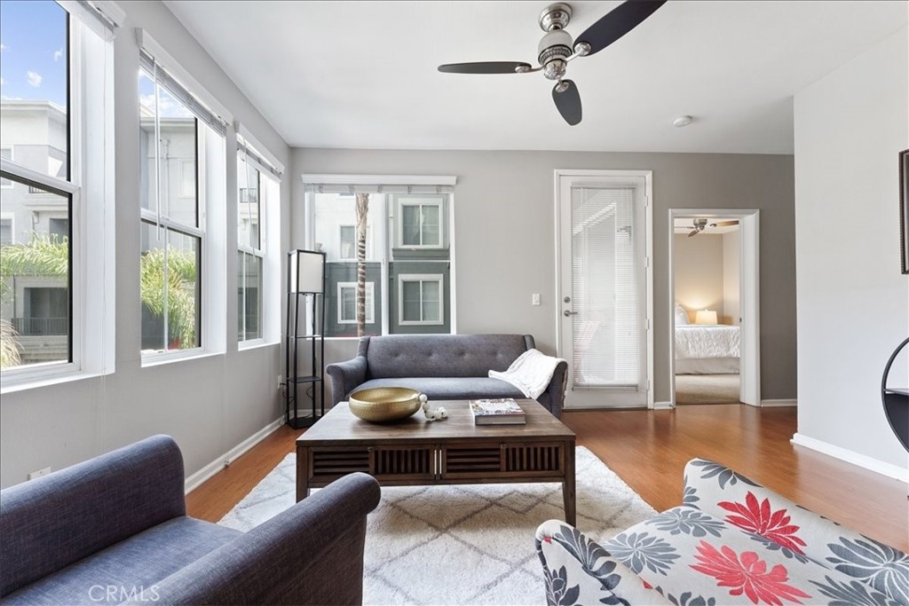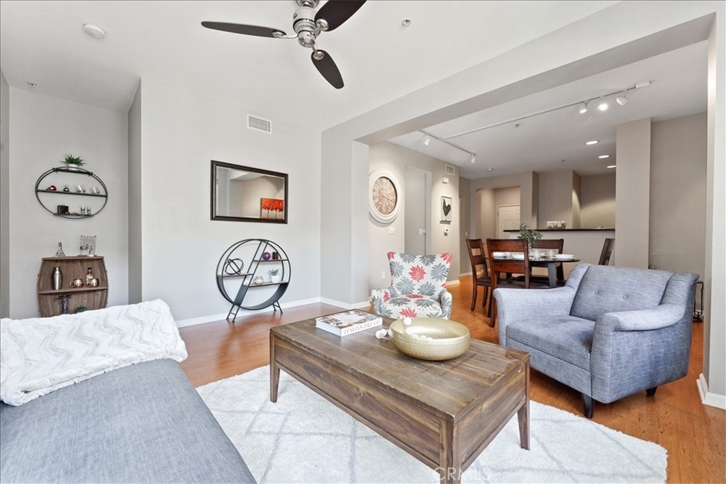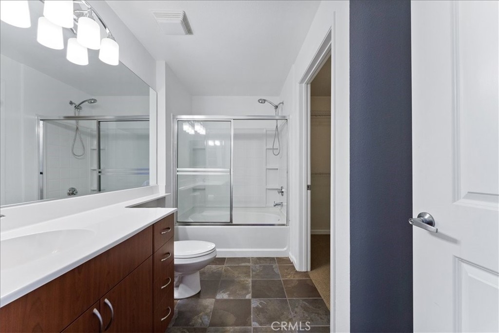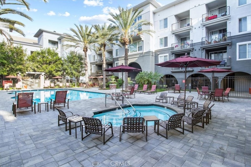 The Second You Walk In You're Going To Know You're Home. This rare Fenway Stadium Loft is in the heart of the Platinum Triangle in Anaheim. The end unit features only ONE shared wall along the kitchen, 2 bedrooms 2 bathrooms, a walk-in closet, 2 parking spaces, and a storage unit ($10,000 upgrade). As you enter the home the kitchen is left with stainless steel appliances, a gas range, and granite countertops. To the right is the guest bedroom which has direct access to the guest bathroom. The bright living room has more windows than most in the complex. The primary bedroom features a slider to the patio, a walk-in closet, and dual sinks. The unit also features central air conditioning & forced heat, a newer tankless water heater, and inside full-size laundry. The balcony overlooks the peaceful courtyard and includes a good-sized closet. This ideally located unit is steps from the parking structure which is a huge benefit when carrying groceries in. The second parking space is also located close to the stairwell for easy access to the unit. The Stadium Lofts Community includes a clubhouse with kitchen, pool table, meeting room, a resort-style pool & spa, recently remodeled fitness center, sauna, indoor lounge with plasma TV, outdoor lounge with fireplace, and courtyards with BBQ areas. The centrally located condo is steps to Angel Stadium. The Grove is down the street along with Disneyland, the Honda Center, and numerous dining options. Easy access to 5 and 57 freeways.