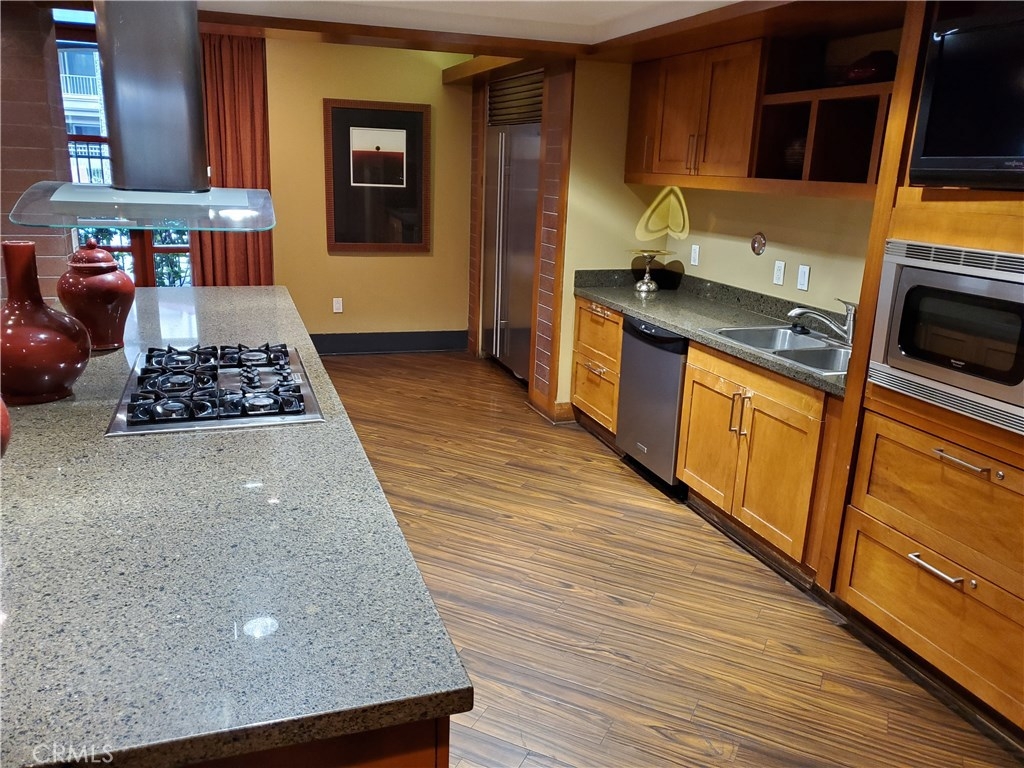 Absolutely Turnkey 1 Bedroom, 1 Bathroom Unit on the 2rd Floor of the Stadium Lofts! Granite Counter tops, Stainless Steel Appliances, and Breakfast Bar in the Kitchen adjacent to dining room. Spacious Living Room, adjacent Dining Room. Very open floor plan from entry view kitchen, dining and living rooms. Full Laundry Closet, Walk-In Closet in the Master Suite. Nice view of outdoor atrium with relaxing waterfall from 3rd floor balcony accessible via large slider in master suite or door from living room. This unit includes two parking spaces and a shared 12' X 10' storage closet. Includes Central Air Conditioning & Central Heating. The Stadium Lofts Community Includes an Association Clubhouse with Kitchen, Pool Table, Shuffle Board, Business Meeting Room, Resort-Style Pool and Spa, Fitness Center, Sauna, Indoor Lounge with Plasma TV, Outdoor Lounge with Fireplace, Several Courtyards with BBQ Areas, Plus so Much More! Steps to Angels Stadium and The Grove. Close to Disneyland and the Honda Center. Easy Access to the 5 and 57 Freeways