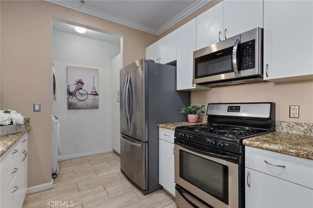 Welcome to resort-style living at the highly sought after Stadium Lofts in Anaheim! Excellent location within the community near the elevator & close to the assigned parking space. This loft-style floorplan features a great open living space with lots of natural light, a large walk-in closet, crown molding, laminate floors and neutral paint colors. Updated kitchen boasts newer tile floors, granite countertops, and stainless steel appliances. Convenient inside laundry closet with stackable washer & dryer. Stadium Lofts amenities include a clubhouse with kitchen, sparkling pool & spa, fitness center, indoor lounge with plasma TV, outdoor lounge with fireplace, and beautifully landscaped courtyards with sitting and BBQ areas. Low monthly HOA dues also include water, trash, and basic internet! Located near the Angel Stadium, Honda Center, Disneyland, 5/57/22 freeways. Welcome Home!