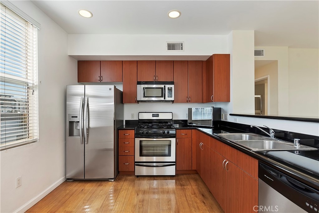 Location Location Location… Welcome to the contemporary-luxury Stadium Lofts. Amazing condo features 2 bedrooms, 2 bathrooms. This is the largest of the 2 bedroom units in the complex dubbed the "Yankee Package" with only 1 of 6 units of the 395 units in the complex. The Yankee Package has 11% more square footage than the next lowest package and a more desirable living area. Spacious kitchen with granite countertops, open floor plan with dining area and living area. Washer & dryer hook up in unit, and a covered balcony with incredible view. Astonishing amenities include a pool & spa, dry sauna, clubhouse with full kitchen, billiards room, courtyards with BBQ areas, perfect for entertaining! And the community is beautifully landscaped. 2 parking spaces, with security gates around the whole community. Close proximity to the 5 and 57 freeways access, across the street from Angels Stadium and very close to Disneyland and the Anaheim Pond. HOA includes Internet, Water and Trash.