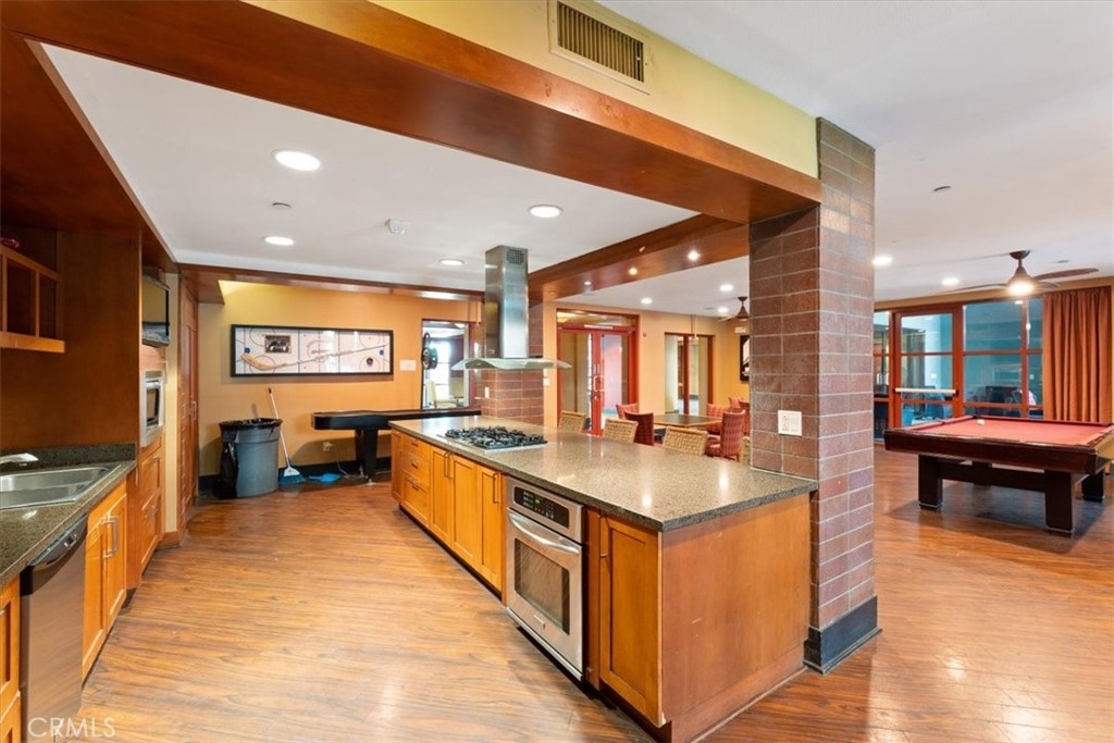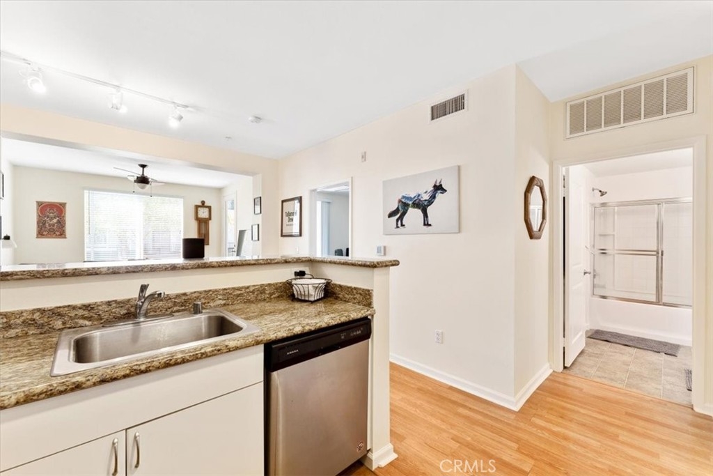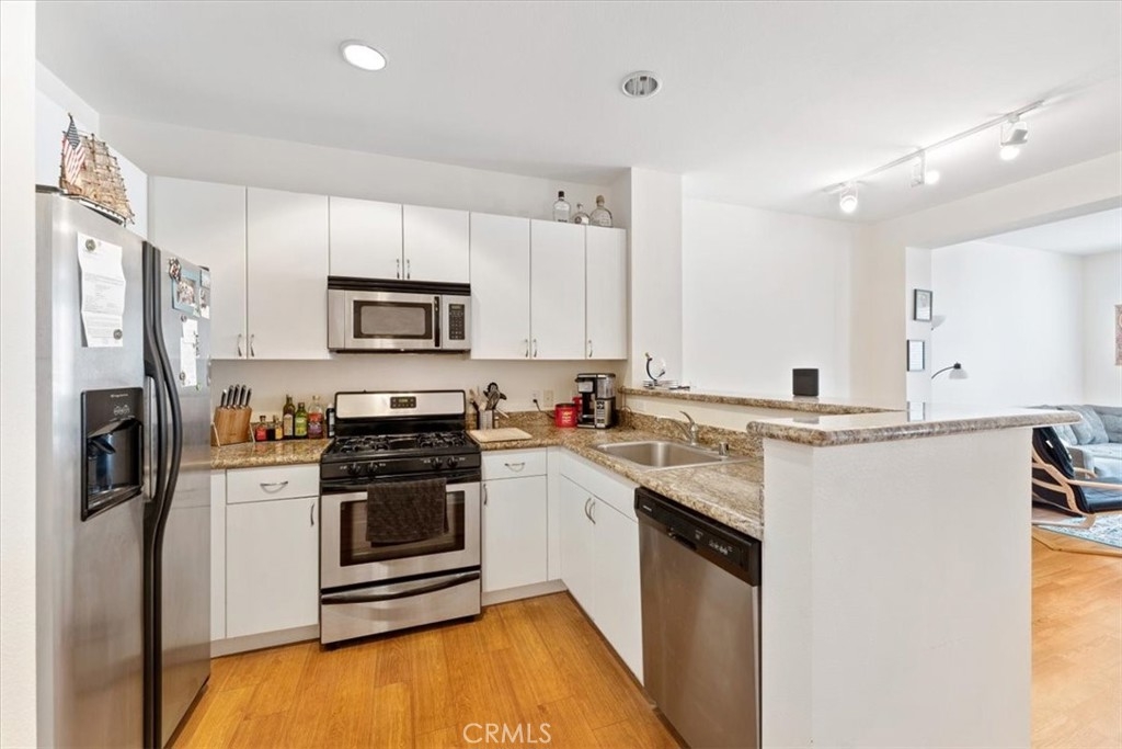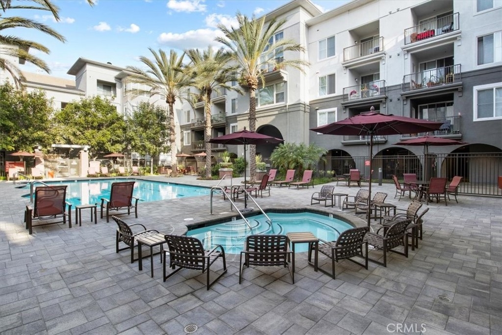 Welcome to the Stadium Lofts! Contemporary resort living at it's best in the highly desirable Platinum Triangle. This beautiful 1 bedroom, 1 bath features 9ft ceilings, sliding glass doors to balcony with views of the beautifully manicured courtyard. The kitchen has stainless steel appliances, granite countertops, white cabinets, breakfast bar and is open to the living area making it perfect for entertaining. The unit also features newer carpet and laminate flooring with a full size washer/dryer and walk in closet. This unit also includes 2 Deeded parking spaces in gated parking structure! Very rare for this floor plan! Low HOA which includes water, trash, sewer, and wifi. The Stadium Loft Community has resort style amenities which include a clubhouse with kitchen, pool table, meeting room, remodeled pool and spa, recently remodeled fitness center, sauna, indoor lounge with TV, outdoor lounge with fireplace and courtyards with seating and BBQ areas. The Stadium Lofts are centrally located and minutes away from Angels Stadium, Honda Center, Disneyland, The Block of Orange, The Garden Walk, The Grove, Convention Center and the Amtrak Station. Near freeways, transportation, parks, dining and shopping centers. Come see this potential investment property or perfect starter home!