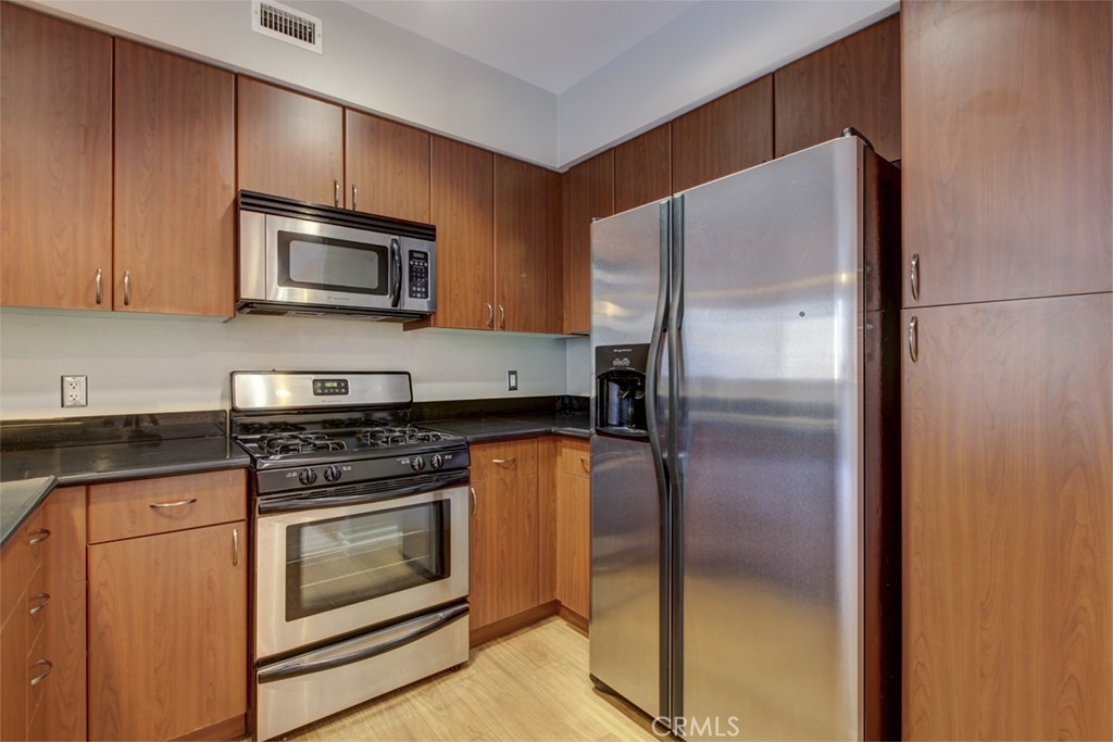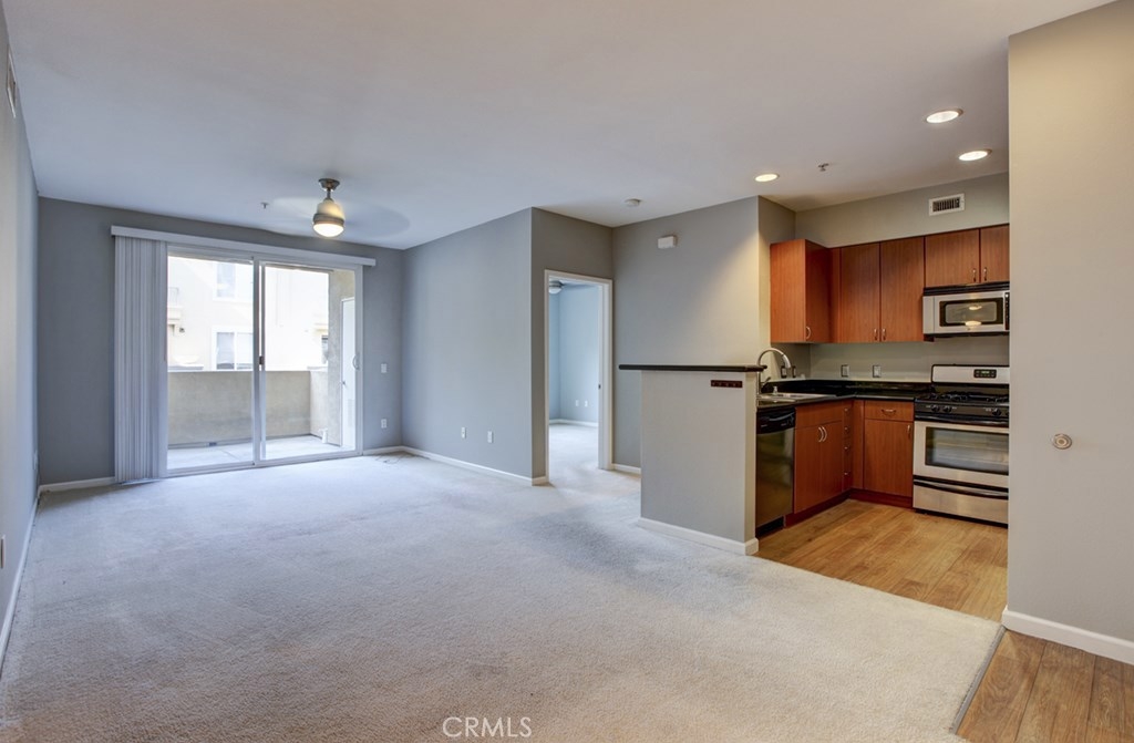 This turnkey Stadium Lofts unit is ready for you to make it your home! This home has high ceilings, an open concept and the light and bright feel that buyers are looking for. It has been freshly painted with modern grey and blue tones. There are also great features in this unit including a large kitchen with plenty of counter space and cabinets, bar seating as well as a dining area, inside laurndry, a large master suit with a walk-in closet and en suite bathroom, a second bedroom that is on the other side of the unit which is great for privacy and a 2nd full bath. This unit is an interior location within the complex so there is no street noise. The Stadium Lofts is a highly desired complex that is within walking distance of Anaheim Stadium and The Grove that has incredible amenities such as a huge pool and spa, a sauna, an outdoor BBQs, a gym, an outdoor covered seating area with a fireplace, another seating area with a TV and a clubhouse with full kitchen, TV, pool table and shuffle board. The location is superb as it is also close to Disneyland, The Honda Center, The Outlets at Orange, Anaheim GardenWalk, the Amtrak Station, Anaheim Packing District and more. There is also easy freeway access to the 57, 5 and 22 freeways. This is truly a must see!