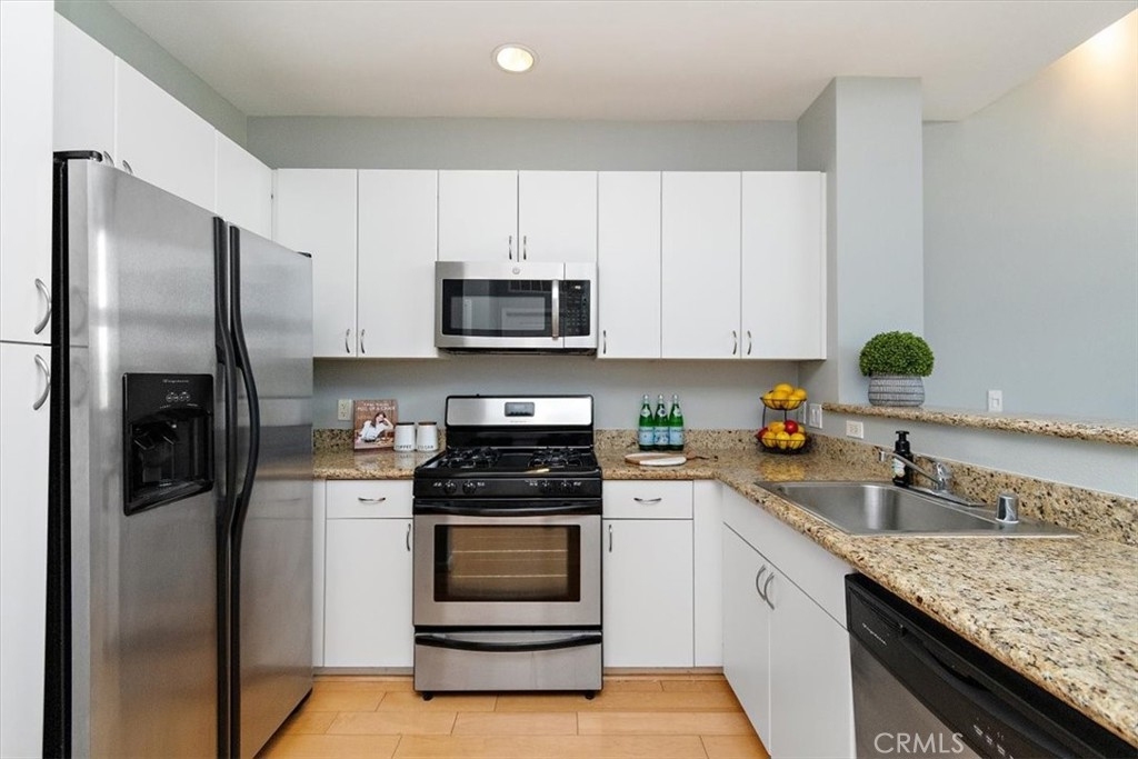 Beautiful Contemporary Resort Style Stadium Lofts is located in the highly desirable Platinum Triangle. This gorgeous top-floor penthouse studio unit has the best view looking over the swimming pool. Expansive doors and high ceilings capture the open feel of luxury living and shed plenty of natural lighting. Well-appointed kitchen features granite counters, stainless steel appliances, wood cabinets and a breakfast nook. The kitchen is open to the dining space and living room. Two large double doors open up to the balcony to create a dream setting for entertainment or relaxation. Furthermore, this home features a remote controlled & retractable Murphy Bed, a laundry closet, walk-in closet, and convenient access to parking. EV charging stations are available if needed! The Stadium Lofts Community is complete with resort style amenities which include a clubhouse with kitchen, pool table, meeting room, a remodeled pool & spa, recently remodeled fitness center, sauna, indoor lounge with TV, outdoor lounge with fireplace, and courtyards with sitting and BBQ areas. HOA completed the renovation in the beginning of 2021. The exterior has a fresh coat of paint, the pool has new pavers and is re-plastered, and window screens were just replaced. This unit was also featured on OCRegister.com and was chosen to be one of the model units due to the pristine view. Prime location. We are centrally located in Anaheim's Platinum Triangle, minutes away from Angels Stadium, Honda Center, Disneyland, The Garden Walk, Amtrak Station, Convention Center, The Grove, and The Block of Orange. Near to freeways, transportation, parks, dining, and shopping centers. Move-right in. A Must See! Low HOA, includes water, trash, sewer, and wifi. For more photos & a video tour, Visit - https://realestateconnectpro.com/1801-E-Katella-Ave-4010/idx
