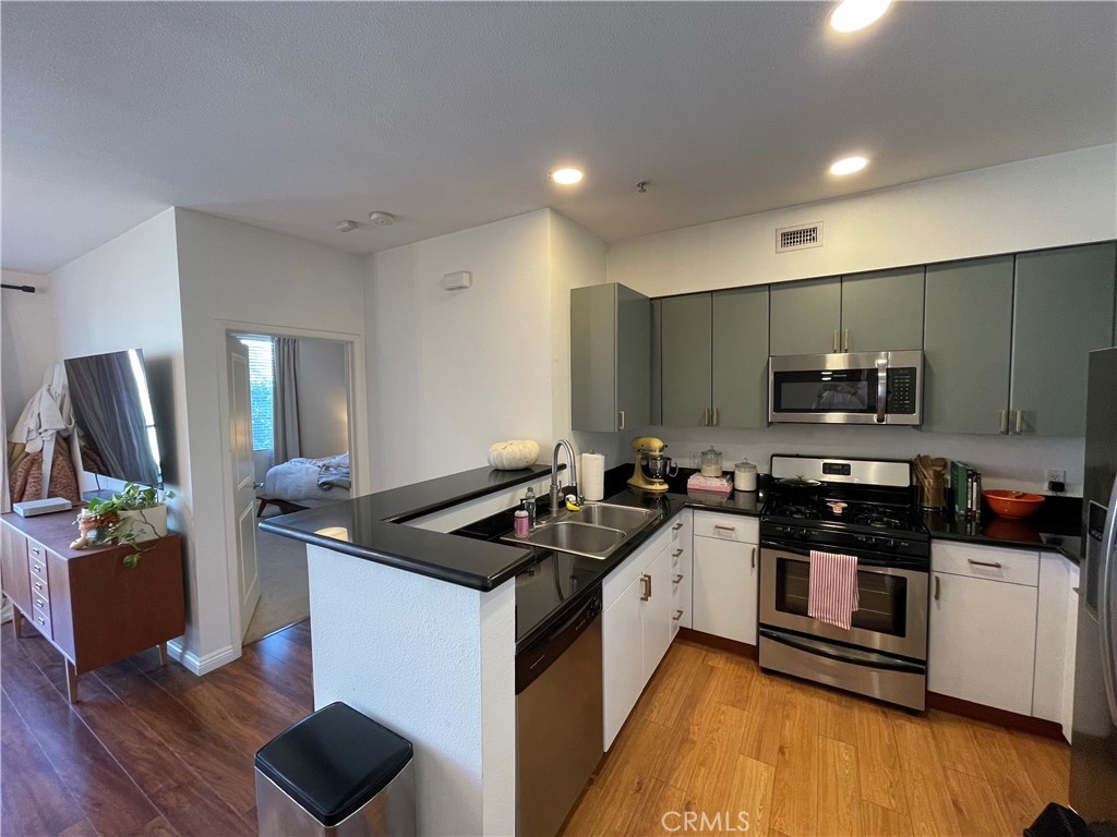 Modern, upgraded top-floor unit in the newly-renovated Stadium Lofts community. This interior unit faces west with amazing natural light and quiet courtyard below. Features newer laminate flooring, rain shower in master bathroom, custom closet in master bedroom, recessed lighting in living areas, new tankless water heat, Nest thermostat, and generous balcony with storage closet. Two parking spots are included with this unit. Community has undergone extensive renovations in the past 2 years including new pool, spa, interior/exterior paint, upgraded common areas, and more. Angels Stadium and the Honda Center are just a short walk away, and Disneyland and countless breweries are just a quick drive.