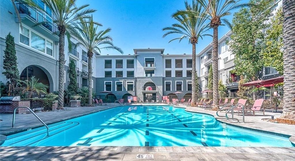 Imagine being within a short walk to an exciting array of dining and entertainment, world class event venues and championship sports teams, and easy access to the rest of Southern California from 3 major freeways and an ultra modern transit hub. Welcome to the Stadium Lofts community. This community has all the amenities one would expect without even leaving home: restaurants/bar, new pool/spa, sauna, updated fitness center, BBQ areas in landscaped garden courtyards, etc. The studio style condo features an open floor plan with a spectacular, nearly floor to ceiling window to allow in the sights and sounds of the city. This unit includes a kitchen, bathroom, breakfast bar, and indoor laundry room with full-size machines, and a walk-in closet. Several steps away from this unit is something few other units have: an 8' x 9' storage room. An assigned parking space is close by. Take the opportunity and enjoy a new desirable lifestyle in a very dynamic and exciting community today.