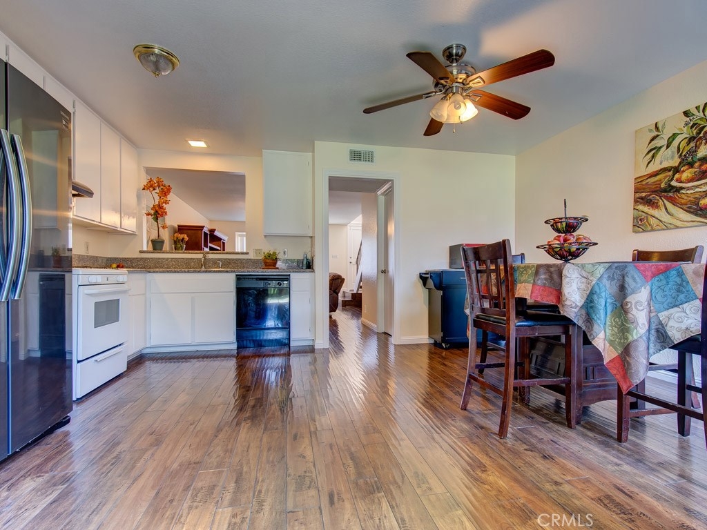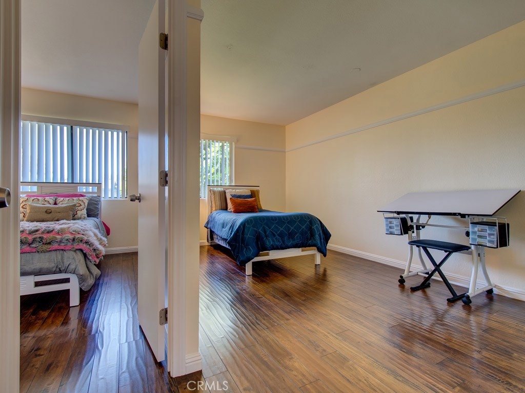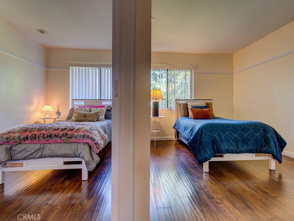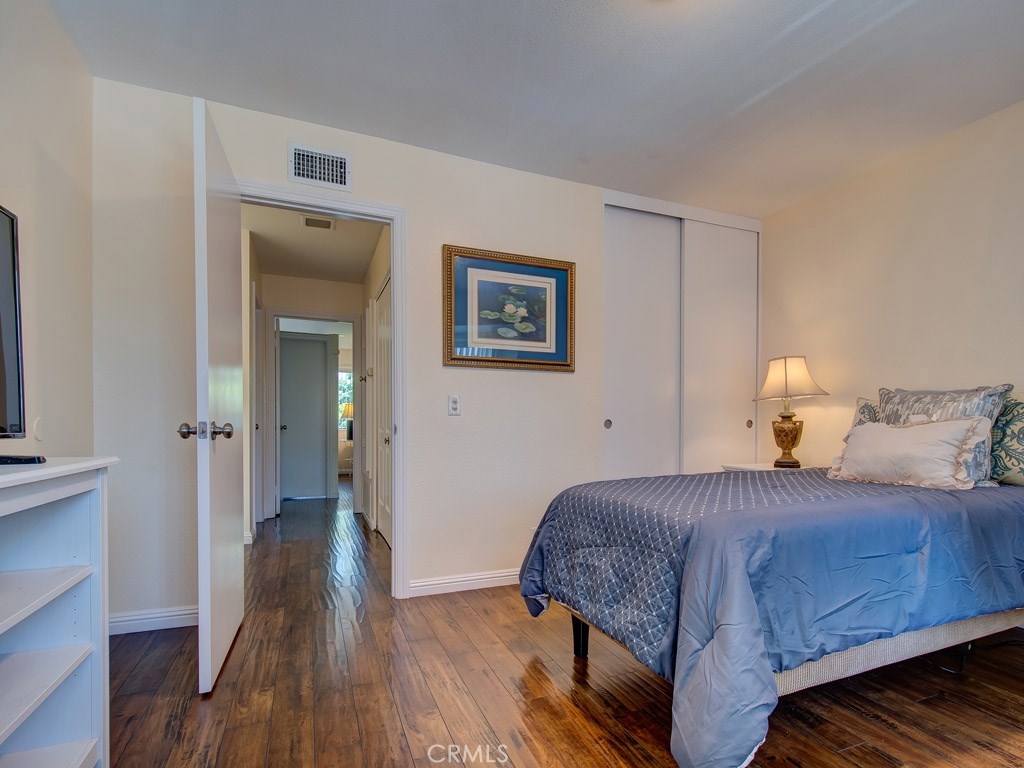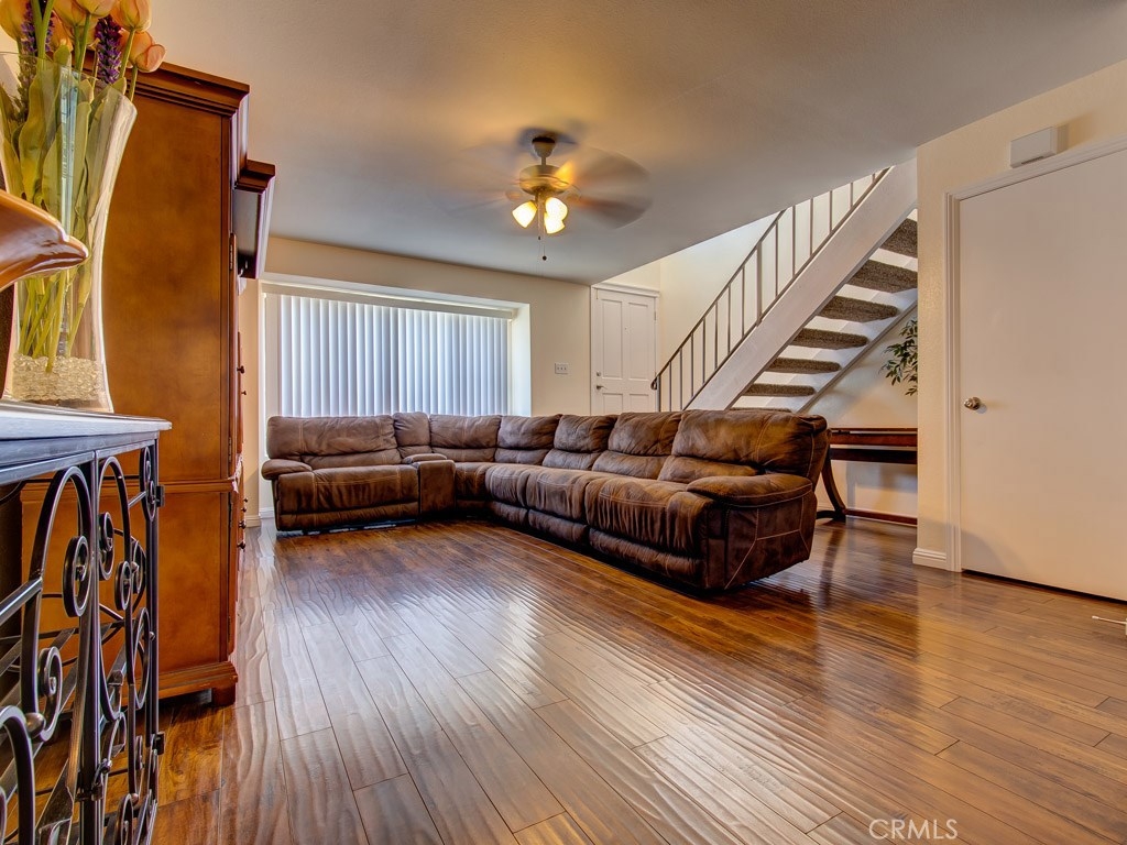 Amazing investment opportunity! Beautifully updated, impeccably maintained & priced to sell fast! First floor has large formal living room, dining room, family room, spacious kitchen w/ granite counter top & access to backyard, guest bathroom, hall closet, under-stairs space for storage or desk, large fenced patio w/ synthetic grass, & 2-car attached garage w/ access to patio. Stair has metal handrail & carpeted steps. Second floor has large master bedroom w/ walk-in closet, another bedroom w/ closet, linen closet, bathroom w/ shower over tub, & laundry area w/ space for full-size appliances & storage. Master bedroom has been split into 2 bedrooms. New interior paint, new shower stall & tub, & new heating & AC equipment. Beautiful dark laminate wood flooring, baseboards & window blinds throughout. Close to community mailbox area, green area, pool & jacuzzi. Amazing location near schools, shopping, world-famous entertainment, & access to freeway. Nobody above, nobody below! HOA is responsible for outside maintenance including roof, dwelling insurance, sewer & trash, & amenities. PROPERTY IS ON LEASED LAND. Current owner expenses: $275/month HOA dues, $275/month land lease fee, property taxes on the house, bill for electricity/water, and bill for gas. Land lease expires on Jul-01-2034 & copy of the Master Lease document is attached as Supplement to this listing. No Mello Roos, low tax rate, and below-market monthly HOA dues & land lease fee. Do the numbers, this is a must see!