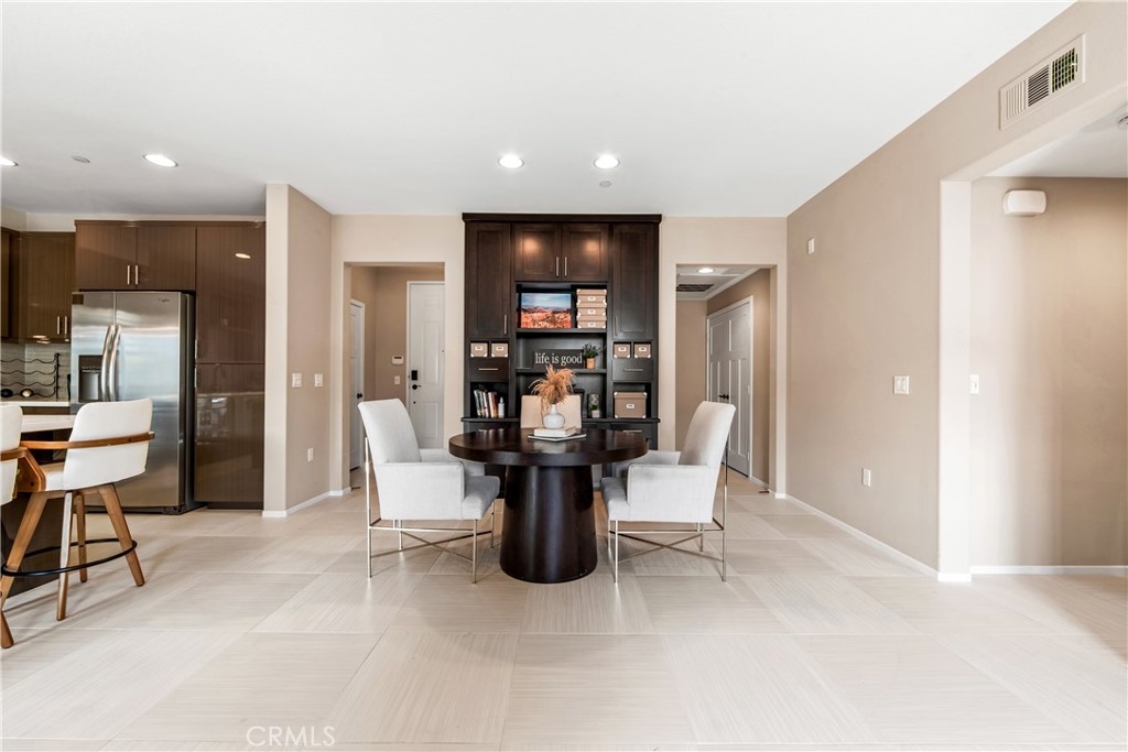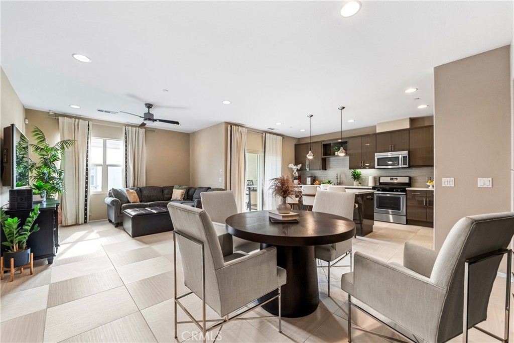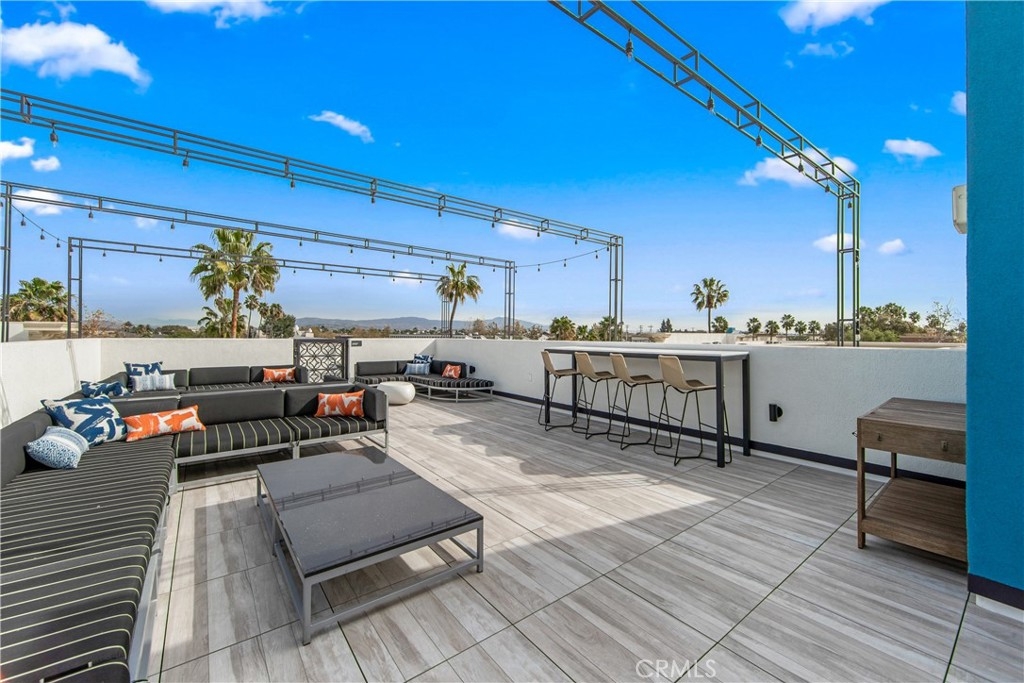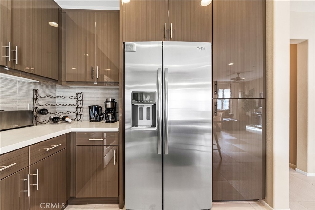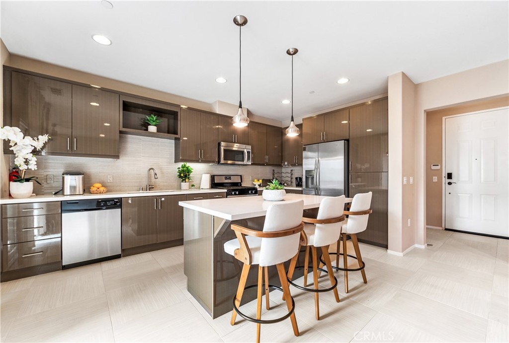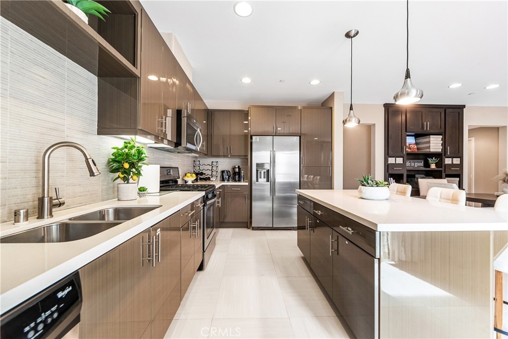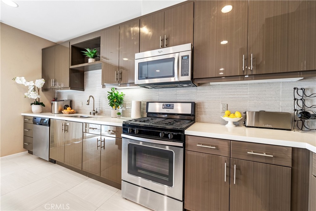 Stunning Fully Furnished Model Home in Downtown Anaheim – Highly Upgraded! Discover this highly upgraded and fully furnished condominium in the heart of downtown Anaheim, directly across from the vibrant Packing House. Boasting a spacious open floor plan, this model home offers modern elegance and premium upgrades throughout. The gourmet kitchen is a chef’s dream, featuring Stainless Steel Whirlpool appliances, including a refrigerator, washer, and dryer, along with a large island that doubles as a breakfast bar. The sleek, lacquered cabinetry complements the neutral-tone Quartz countertops, accented by a stylish full tile backsplash. Custom paint enhances the inviting ambiance, while the dining area showcases a built-in shelf and bookcase system for added functionality. The flooring combines upgraded hard-surface tile with a linen-look finish and plush neutral carpeting. The spacious primary suite includes a large walk-in closet plus an additional wardrobe closet. The luxurious bathroom features an oversized walk-in shower. Step outside to your private deck, perfect for outdoor dining and relaxation, with space for a table, chairs, and a barbecue. This home includes a one-car garage with direct access to a secure, restricted-entry building. This turn-key property is ideal for those seeking style and convenience. Located just five minutes from Cal State Fullerton and only two miles from Disneyland, this prime location offers the best of Anaheim living. No Mello-Roos!