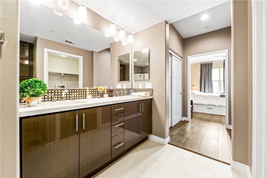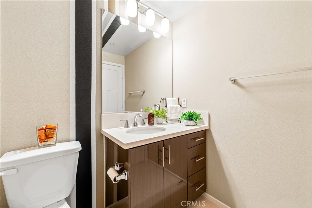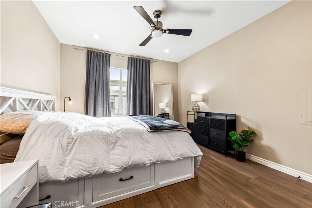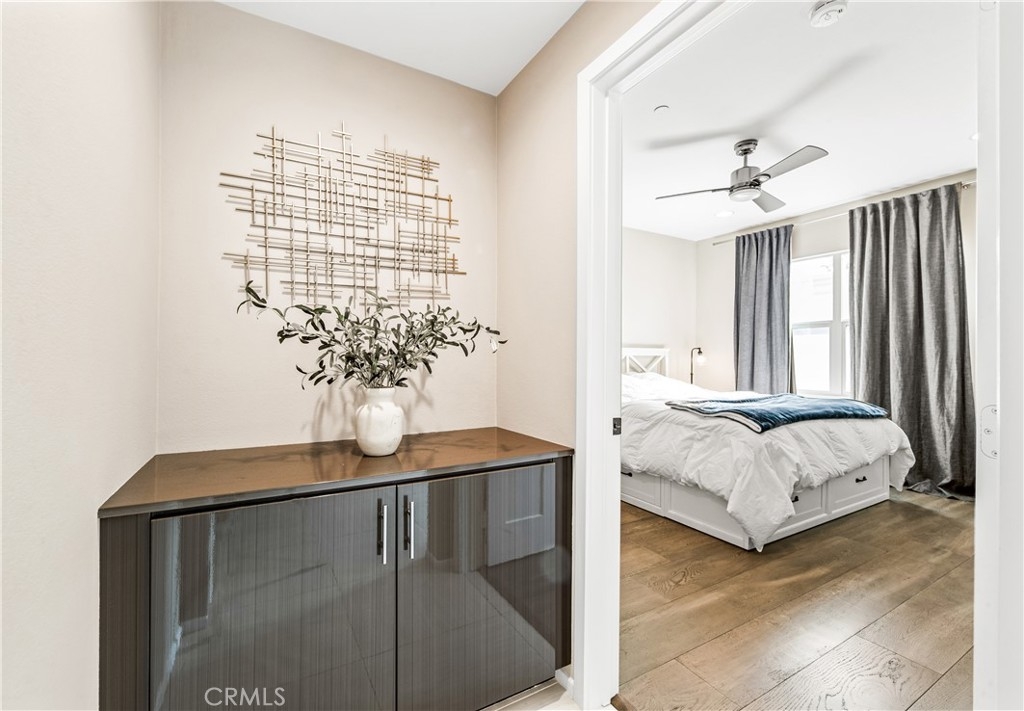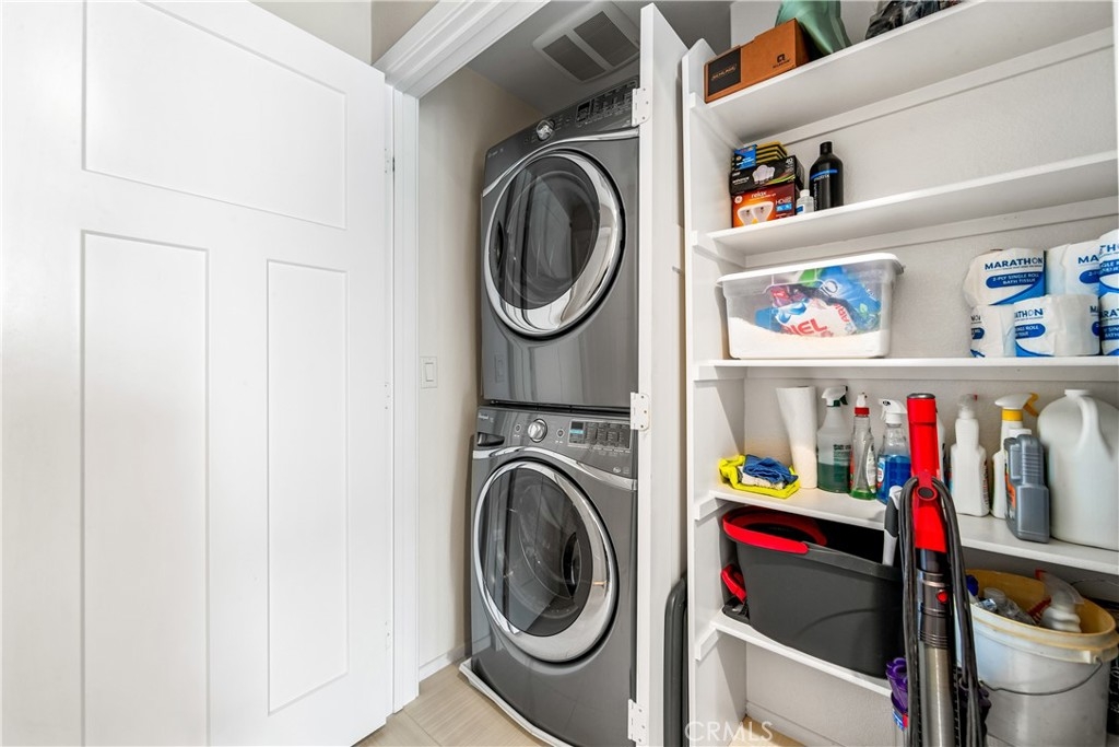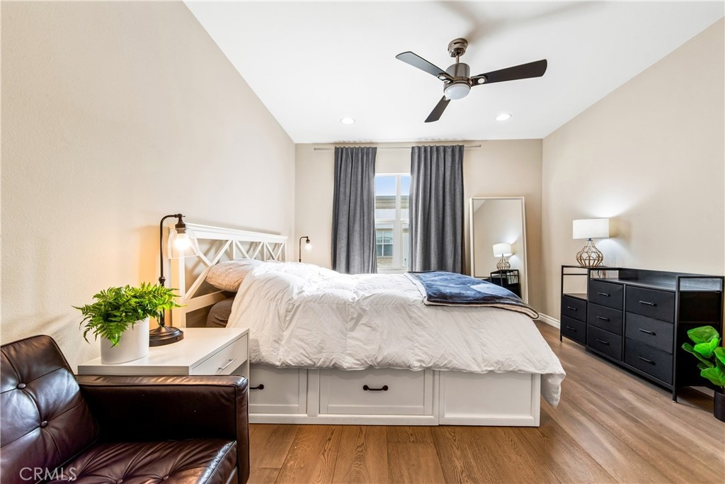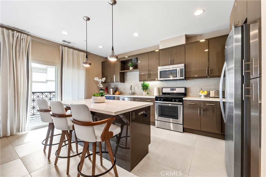 Stunning Fully Furnished Model Home in Downtown Anaheim – Highly Upgraded! Discover this highly upgraded and fully furnished condominium in the heart of downtown Anaheim, directly across from the vibrant Packing House. Boasting a spacious open floor plan, this model home offers modern elegance and premium upgrades throughout. The gourmet kitchen is a chef’s dream, featuring Stainless Steel Whirlpool appliances, including a refrigerator, washer, and dryer, along with a large island that doubles as a breakfast bar. The sleek, lacquered cabinetry complements the neutral-tone Quartz countertops, accented by a stylish full tile backsplash. Custom paint enhances the inviting ambiance, while the dining area showcases a built-in shelf and bookcase system for added functionality. The flooring combines upgraded hard-surface tile with a linen-look finish and plush neutral carpeting. The spacious primary suite includes a large walk-in closet plus an additional wardrobe closet. The luxurious bathroom features an oversized walk-in shower. Step outside to your private deck, perfect for outdoor dining and relaxation, with space for a table, chairs, and a barbecue. This home includes a one-car garage with direct access to a secure, restricted-entry building. This turn-key property is ideal for those seeking style and convenience. Located just five minutes from Cal State Fullerton and only two miles from Disneyland, this prime location offers the best of Anaheim living. No Mello-Roos!