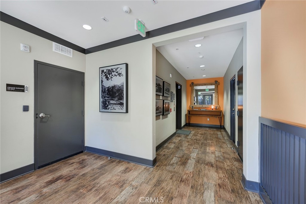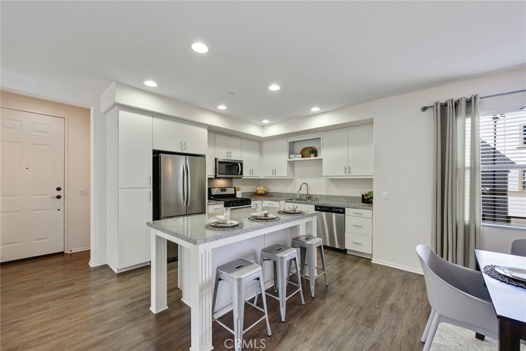 Highly desirable Downtown Anaheim condo located in "The Domain" by Brookfield Homes Plan 5 model within the Packing District. Directly located across the street from the Historic Packing House and Packard Building. Downtown Anaheim / Center Street is just north of the property with additional retail, coffee shops, and restaurants. The location combines the best of both worlds: ideally located near stylish community pool and shared rooftop lounge while facing the quieter streets and interior areas of the community. Features include granite countertops, large kitchen island, recessed lighting, laminate wood flooring in high traffic areas, and plenty of light in living and kitchen area. The Domain was built with the best design characteristics for a downtown condo: every elevator lobby only services few units, secure key fob access throughout, and private garages for all units.