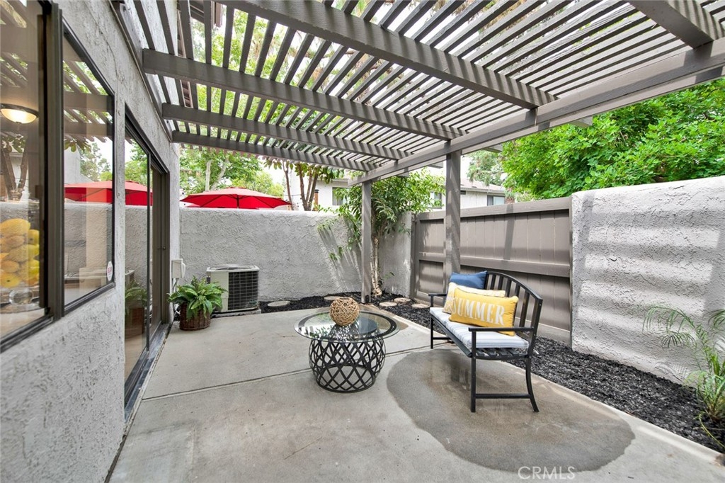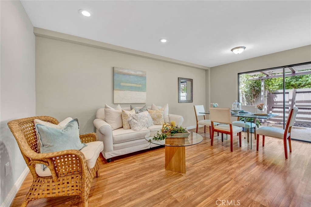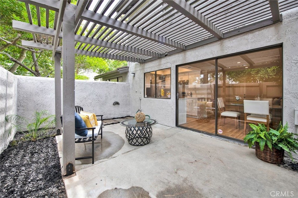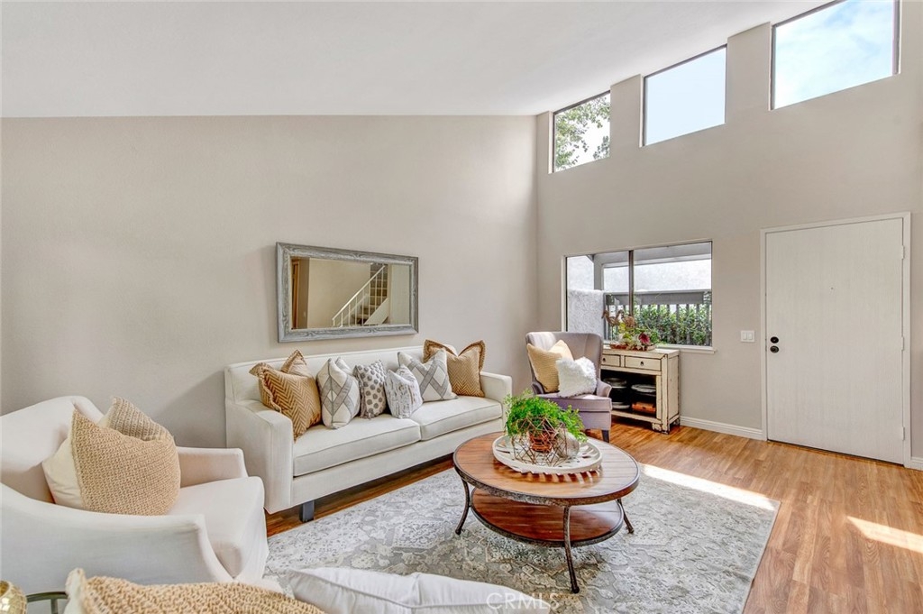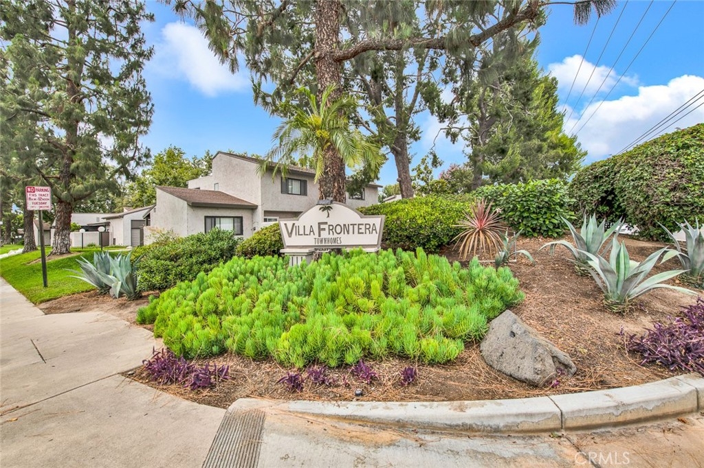 Top to bottom remodel just completed at this spacious townhome-style Villa Frontera PUD! End unit location offers restorative greenbelt views with mature trees and breathing room. Fully remodeled kitchen features self-closing white cabinetry, quartz countertops, stainless appliances and farm sink. Smooth ceilings, recessed lighting and new overhead light fixtures, newly painted interior, laminate wood & luxury vinyl flooring and new carpet. Both baths (1 full, 1 half) are fully remodeled with white cabinetry, marble countertops, new tub with tile & marble skirt and shower surround--gorgeous! New 2" blinds are ready to install. Spacious living room with vaulted ceiling and high windows. Separate family room with dining area offers views of the fully enclosed covered patio with access to the adjacent greenbelt. Attached 2 car garage with direct entry and laundry area (washer/dryer included) and storage. Oversize primary bedroom has double width closets; storage closets on both levels of the home, as well as a linen closet. HOA maintains the exterior of the unit (roof replacement is underway in the community), gardening and common recreation areas. There is direct access to Anaheim Coves walking and bike trail and the Santa Ana Bike Trail is nearby. Convenient to transportation and shopping. This home is move-in ready!