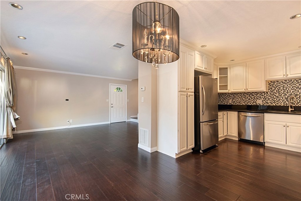 Welcome to this beautiful 2 bedroom 1 bathroom home. When you first walk into this home you will notice the lovely engineered wood flooring throughout the first floor. The kitchen is upgraded and remodeled with granite counter tops, newer appliances and a gas stove and oven. You will be able to enjoy entertaining with the open floor plan and spacious patio. Enjoy the convenience of the 1 car attached garage with direct access and an additional parking spot parallel to the garage. Upstairs you will enjoy your 2 bedrooms with laminate flooring throughout and your full bathroom. The community of Suburbia offers a playground, pool and spa to enjoy Orange County’s amazing weather. This home is close to freeway access, Disneyland, Angel Stadium and the Pond.