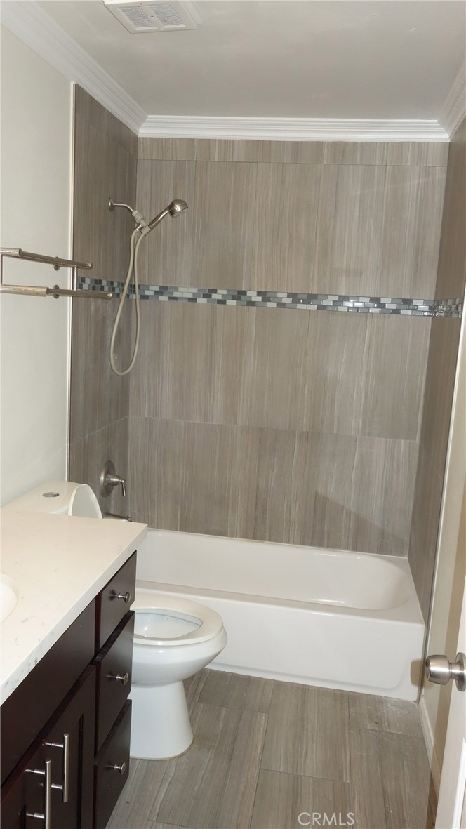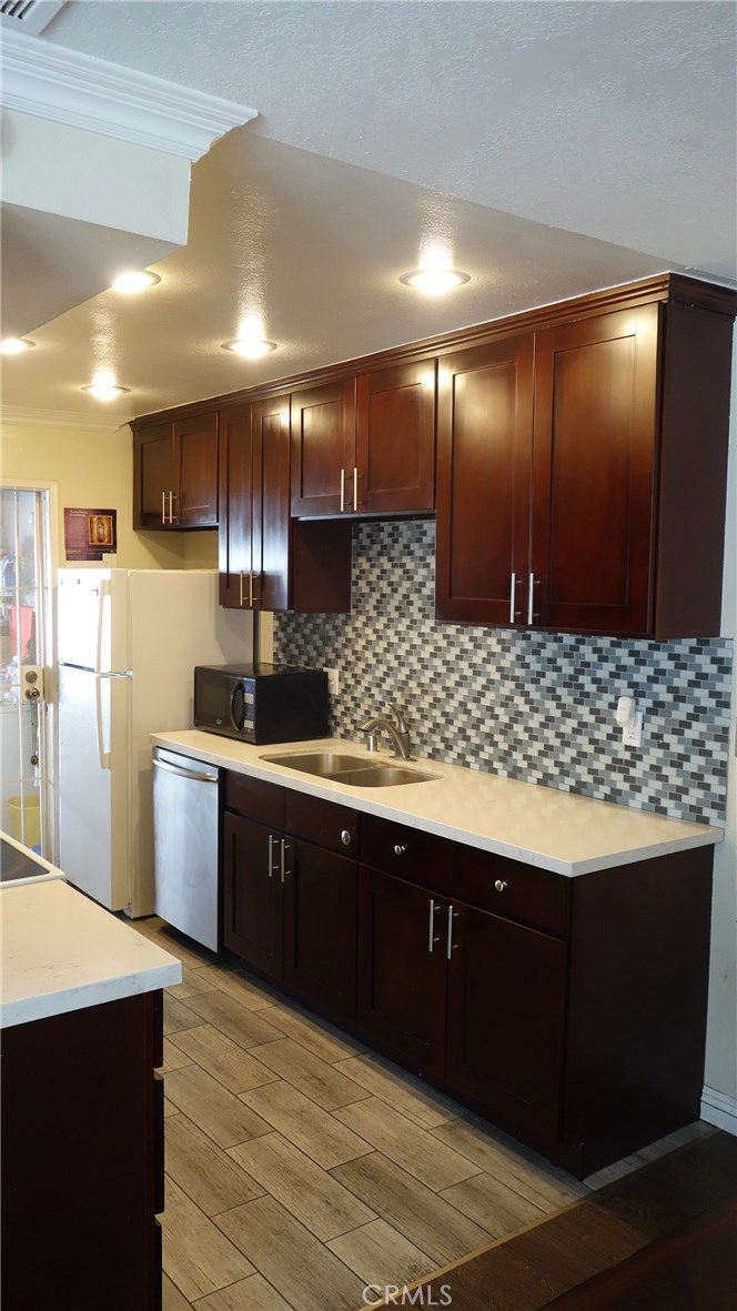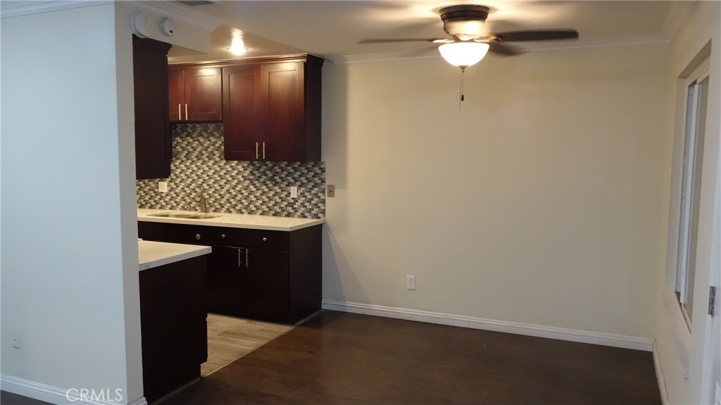 FHA and VA approved!!! Turnkey 3 bedroom townhome with an oversize attached 2-car garage, updated kitchen with granite countertop, self-closing drawers & spice rack, glass tile back splash, open floor plan from kitchen, dinning & living areas. Modern laminate flooring throughout and porcelain tile in the kitchen. Crown moldings throughout, spacious master with walk-in closet, 2 separate ways to the bathroom from the master & secondary bedrooms. Glass tile inlay in shower and porcelain tile. Ample space in the front yard with potential to grow more fruit trees. Other notable features include: newer dual pane windows & sliding doors, newer ceiling fans, recessed lighting in smooth ceiling, central A/C & heating, Washer/Dryer in garage area, HOA amenities include two pool areas, Jacuzzi, and a children playground.