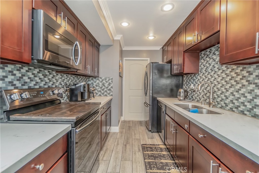 Welcome to Suburbia! This 2-story condo is filled with natural light, the spacious living area has dual pained windows adorned with custom window treatments, recessed dimmable lighting, smart thermostat, and a sliding glass door accessing your private patio. The kitchen is equipped with slow closing cabinets, new faucet fixtures and plumbing, and an electric stove, dishwasher and microwave all still within warranty. The Master Bedroom features a large walk-in closet and Jack and Jill bathroom with an extra separate full-sized vanity in the Master, slow closing cabinets and new faucet fixtures. The remaining two bedrooms are located upstairs with a half bath downstairs and in unit laundry located in the garage. This HOA takes pride in its community and regularly maintains the complex along with its amenities including the various pools, jacuzzi and playgrounds. This turnkey condo is being sold as is and is ready to be called home!