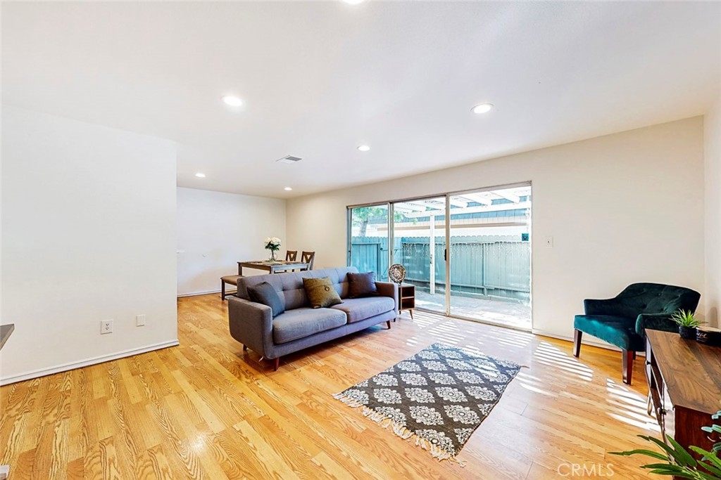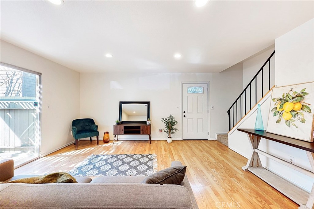 SUPER BUY on this two story, end unit townhome! If you are looking for a townhome with ALL of the amenities to make your life easier then look no further! This home is only attached by one wall and has smooth ceilings, recessed lighting, fresh paint, beautiful laminate flooring downstairs, your own PRIVATE yard, your own ATTACHED garage with direct access and your own designated parking space, your own LAUNDRY! The kitchen has been refurbished with fresh paint, new hardware, new sink, counter and hip subway tile backsplash. Upstairs you have two very spacious bedrooms and a full remodeled bathroom. This community has LOW HOA fees and includes playgrounds, swimming pool and mature trees. Close to the 91 and 57 freeways.