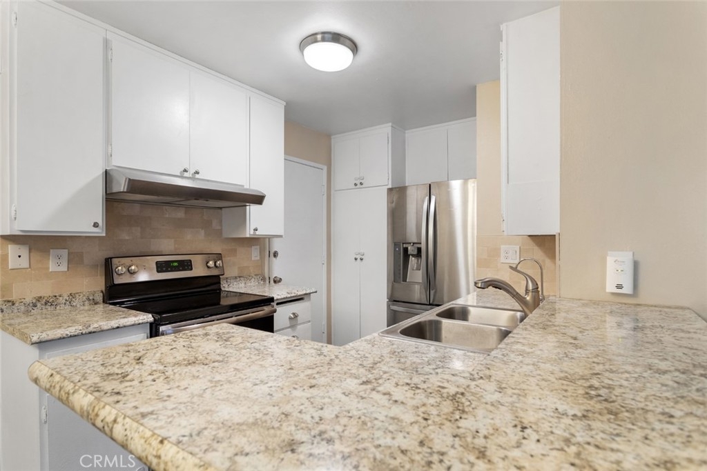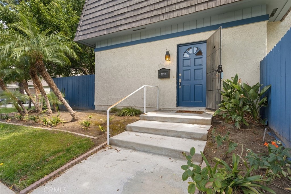 Turnkey Light & Bright End Unit 2 BR 1.5 Bth townhouse that qualifies for FHA/VA financing! Highly sought after Suburbia community. Upstairs you will find an enormous primary Bedroom including two closets, also good sized 2nd Bedroom and updated full bathroom. Downstairs has a living room and ½ bath. Sliding door to wide open & one of the largest patio areas in the entire community with only one common wall and no common fences. Large living room open to dining area and kitchen.. Perfect sized kitchen with stainless steel appliances, granite counters and distressed wood look laminate flooring. Laundry inside direct access single car attached garage . There is also an assigned, private parking space next to garage . About 100 yards to children’s playground and pool area. This home has a great location short walk from Rio Vista Elementary School & Park, close to 57, 91,5 fwys short drive to Anaheim Coves Lincoln Trailhead . Virtual Tour https://my.matterport.com/show/?m=7KsUe3Y33YV