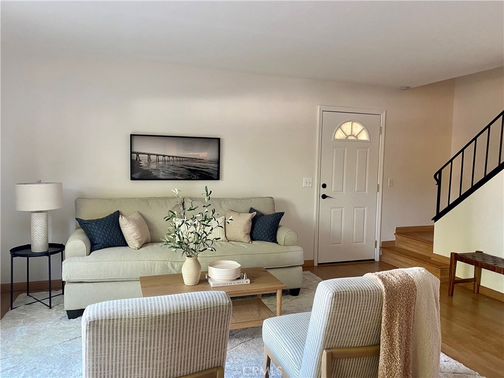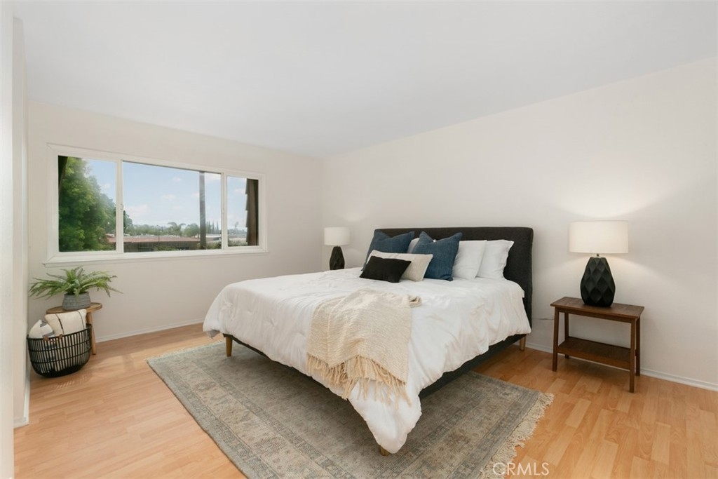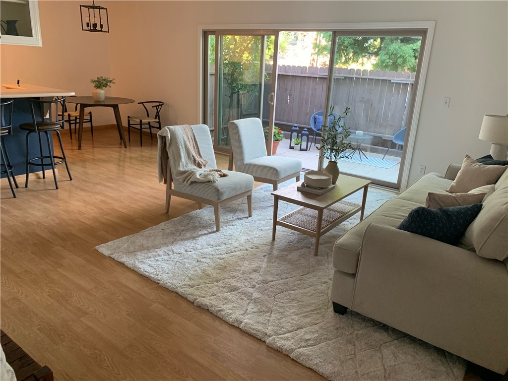 Beautiful light and bright end unit condominium in the Suburbia Neighborhood. This two-story home features 2 bedrooms, both with mirrored closet doors, a full bath upstairs and a convenient powder room on the main floor. Attached is a 1 car garage, with direct access through the kitchen, and an additional parking space right next to the unit. Washer & dryer are located in the garage and the seller is including them in the sale. The kitchen has stainless steel appliances, including a refrigerator, which also stays. Prepare gourmet meals on the gas range and then gather to enjoy snacks at the kitchen counter. The open plan living and dining areas are flooded with sunlight and open up to a private tiled patio. New fixtures and fresh paint makes this unit spacious and bright. Water and roof maintenance, as well as the community pools, jacuzzi & playground are included in the low HOA fees. You are walking distance to Rio Vista Park, Rio Vista Elementary School, and the Riverbed biking trail which extends to the beach. Commuters have quick access to the 91 and 57 Freeways, and local attractions such as, Disneyland, Angels’ Stadium, the Honda Center, and the Anaheim Packing District, are all close by. This home is Turn Key ready for owner occupied or investment rental.