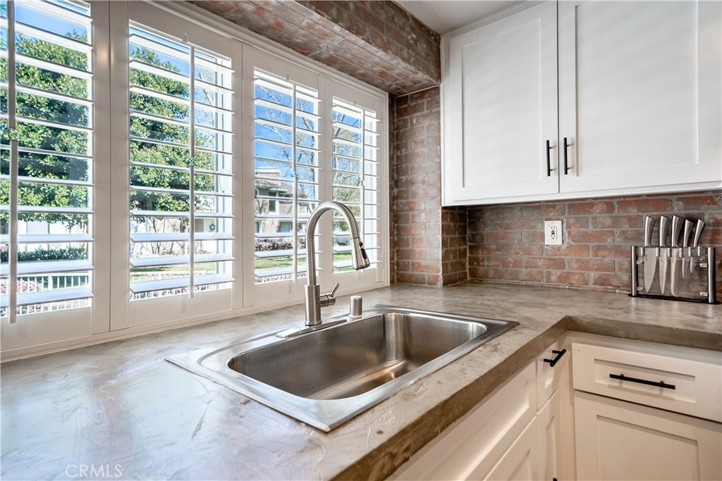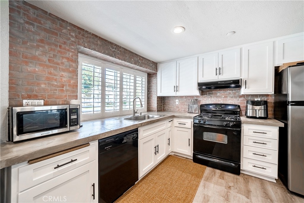 Welcome to the Waterscape Community- this 2-bedroom, 1.5-bathrooms end unit location is perfect for those who love their privacy. Situated in the very popular Downtown Anaheim minutes from the Anaheim Packing House District you will find this spacious, upgraded townhome with 1,191 square foot of living space. As soon as you walk in you will notice the newer laminate style flooring, recessed lighting throughout, well maintained interior paint and dual pane windows with custom white shutters. The main floor you will find the living room that boasts natural lighting, half bathroom with a brick accent wall and the remodeled kitchen with a custom brick accent backsplash- a unique look you will not find elsewhere! All the bedrooms are upstairs. The master suite has mirror closets, well maintained carpet, beautiful skylight over the vanity sinks and a balcony overlooking your private end unit. The second bedroom is spacious in size. Before you leave don't forget to check out the 2-car garage with laundry hook ups located right under the unit with access from inside. The HOA maintains community landscaping, pool, spa and waterfall. HOA pays for trash and water. Must see!