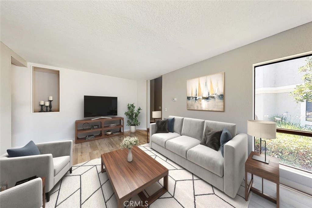 Location, location, location! Located centrally in Downtown Anaheim in the very unique and inviting community “Waterscape”. This end unit is move in ready and offers everything that is essential in a home! There is a two car attached garage with direct access and laundry hook ups. There is a bright and open living space complete with sliding glass door to a beautiful refurbished deck. The kitchen is large and offers an eat in dining area and wonderful natural light. There is a guest bathroom on this floor. Upstairs there is a ginormous primary bedroom with private vanity, two closets and a Juliett balcony. The guest bedroom offers a double door entry and a private vanity. There is also a full bath upstairs. This unit has fresh paint and brand new high quality flooring in natural hues. The HOA fees are $425 per month and cover exterior maintenance, water, sewer and trash fees as well as the community pool and soothing waterfall and lake.