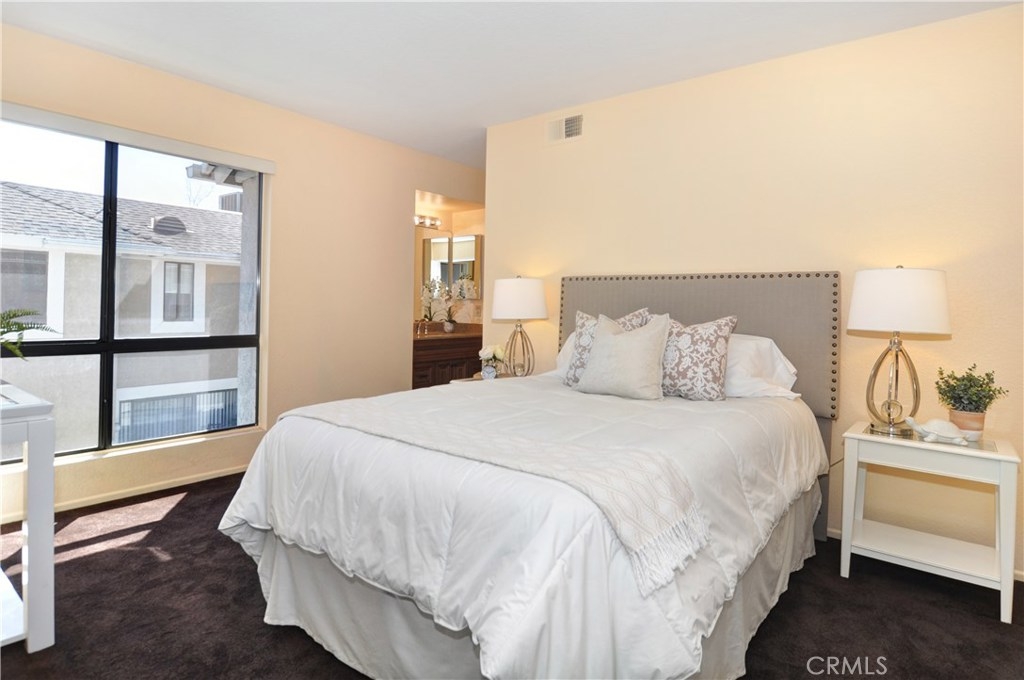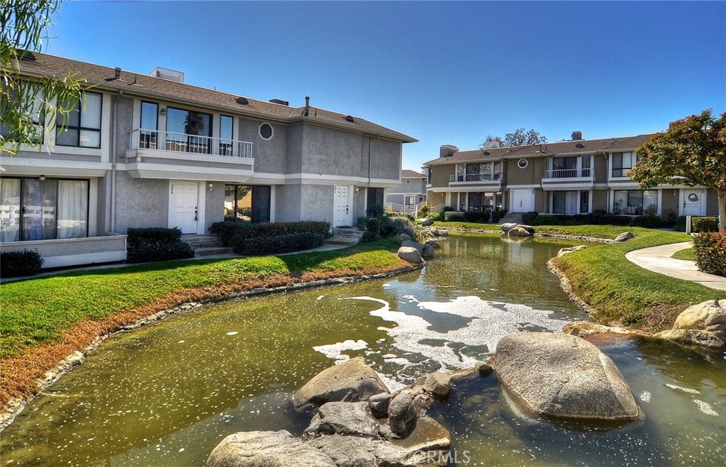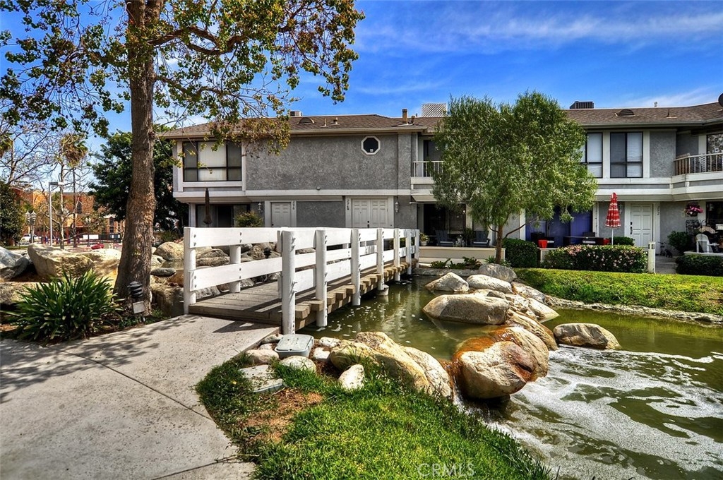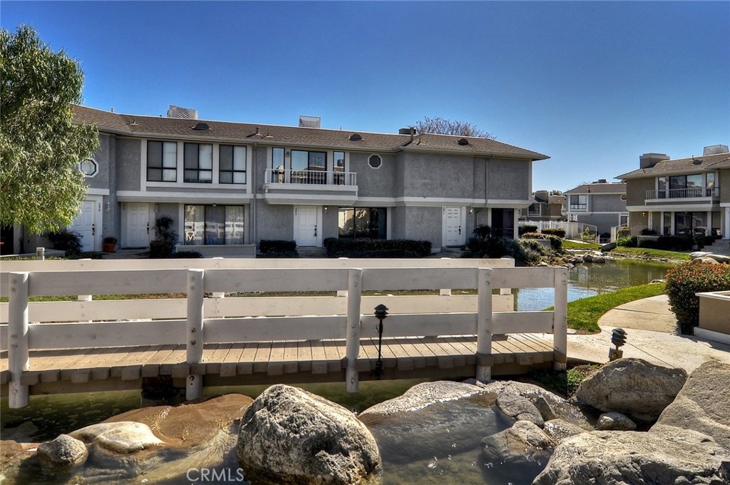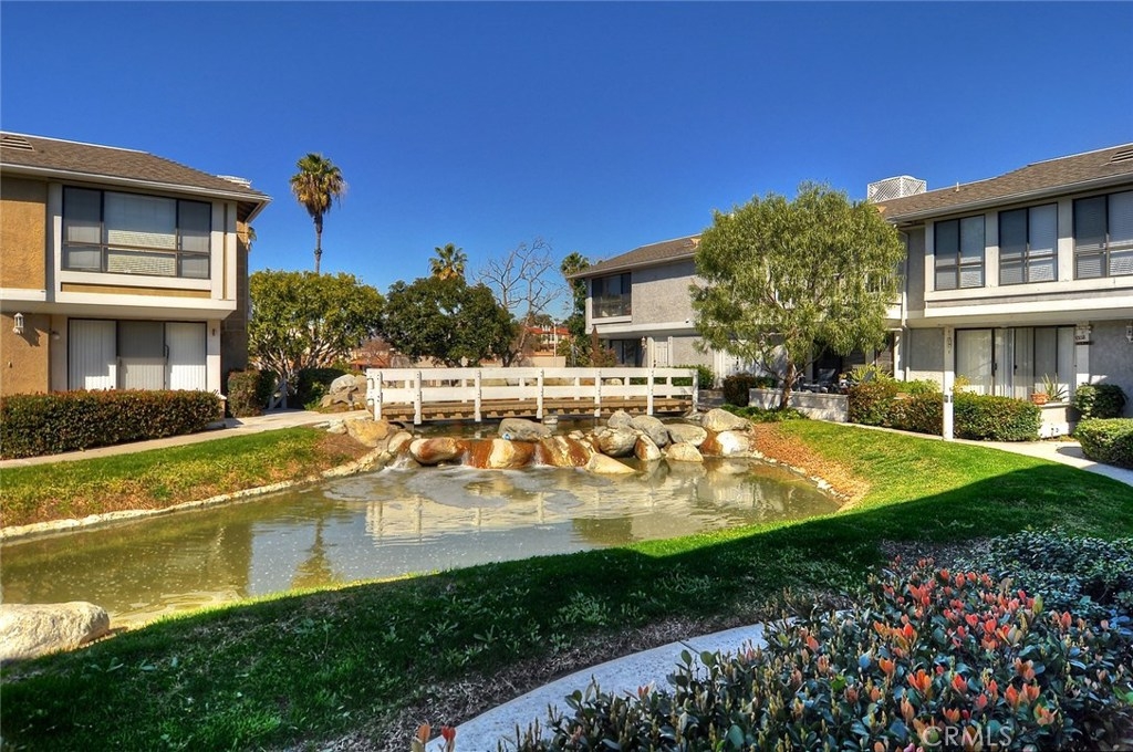 Outstanding and upgraded townhome with prime lakefront location in the Waterscape community - near Colony Historic District of Anaheim. Roomy and open floor plan with big windows, natural light, and wonderful views of the lake, rock waterfall and footbridge. Enjoy meeting up with family and friends in the spacious living room, which opens to front patio and serene water vistas. Bright kitchen features newer tile flooring, ample counter space and cabinetry, and adjacent dining room. Relax evenings in the expansive master bedroom with private balcony to the soothing sights and sounds of the water. The master bedroom has ensuite bath with newer dual vanity, quartz countertop, raised panel doors, new shower with glass door and 18” soaker tub. Second bedroom is generous in size, with double door entry and attached bath. This home is clean and move-in ready with all bathrooms upgraded, newer carpet and tile flooring and newer interior paint. Desirable 2-car attached garage and convenient guest parking. This home is centrally located near Interstate 5, Anaheim Packing House, Farmers Park, Muzeo Museum, churches, Anaheim High School, the central public library, Pearson Park, Disneyland, artisan eateries and great shopping venues. Come home every day to this lovely townhome and Waterscape’s picturesque lake, lush grounds, greenbelts and walkways.