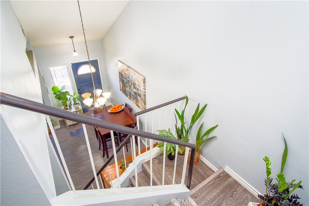 Don't miss this beautiful condo located within the gated community of Wellington Landing! As you walk into the home you are greeted with high ceilings and a very well thought out, functional, and open floor plan. On the bottom floor there is a half bath, a family room, a dining nook, and an open kitchen which is great for entertaining guests. The home has a full two car garage with access into the bottom floor, which is very convenient! Upstairs there are two bedrooms, with a private bathroom in each! The larger master bedroom is spacious and comparable in size to most single family homes that you will find in the area. New modern laminate flooring was recently installed throughout, and the home is well kept and move-in ready! The community of Wellington Landing has a large pool and spa, is across the street from John Marshall park, is close to great public and private schools, and is in close proximity to the 5 freeway for easy commuting. You do not want to miss this one!