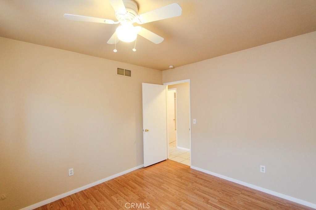 WELCOME HOME! YOU AND YOUR FAMILY SURELY WILL APPRECIATE THIS GREAT STARTER HOME FEATURING CLEAN, CLEAR, and QUIET 2 BEDROOMS 2 BATHROOMS WITH A THOUGHTFUL LAYOUT DESIGN. Tile flooring stretches from spacious living room to open dining area, to clean-layout kitchen, to connecting hallway, and to clean bathrooms. Bedrooms are kept warmth wall-to-wall with laminated wooden flooring. Fan ceilings throughout the home to keep your family cool during hot summer days. Don't forget your family can enjoy the community pool. The home also features a furnace central air to provide heat throughout during cold, winter months. Kitchen granite counter tops sport a clean, strong surfaces for your family-meal-making activities. Dining Area is thoughtfully and spaciously lay out right next to the kitchen. Glass sliding door can bring in sunlight or air while dining. Living room is spacious for your family and guests laying back or watching sports. Master bedroom includes a walk-in closet and its own bathroom. Windows have been upgraded with double-pane windows for extra quietness and insulation. Right outside, there is a green belt for your view and enjoyment. Your kids will surely love this open space, and you can keep an eye on them easily. This home locates away from the parking and provides you and your family that additional calmness and quietness.