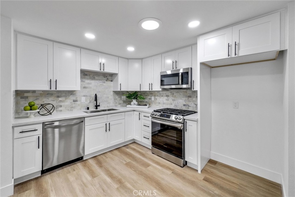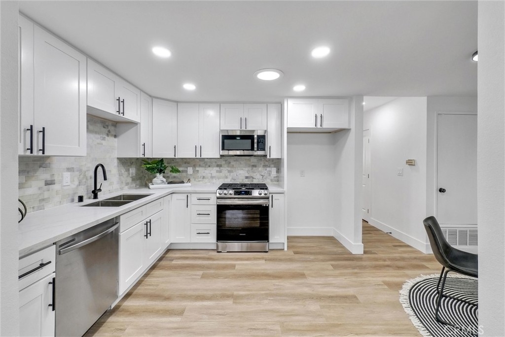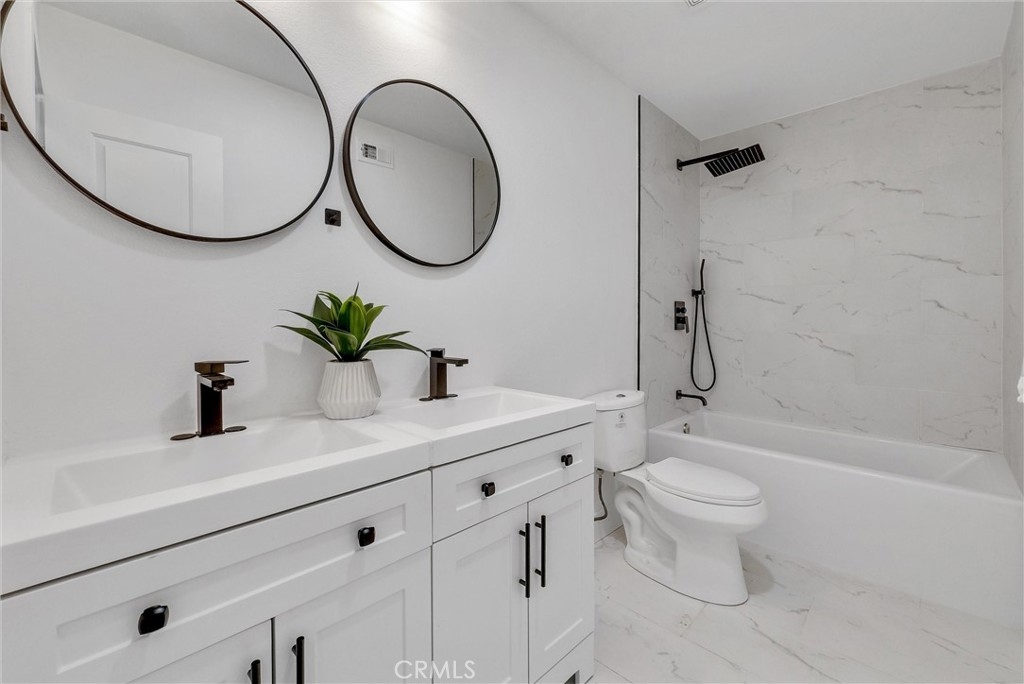 Beautiful turnkey condo in the city of Anaheim! This unit has been completely remodeled and features an open concept floorplan, a gorgeously remodeled kitchen with high end appliances and finishes. The bathroom has also been completely redone and features dual sinks, soft close cabinets/drawers, and offers a spa like feel. The newer dual pane windows allow for an abundance of light to enter and offer a very warm and open feel. Every part of this unit has been upgraded with both style and functionality in mind. With all these features, this property is sure to sell fast!