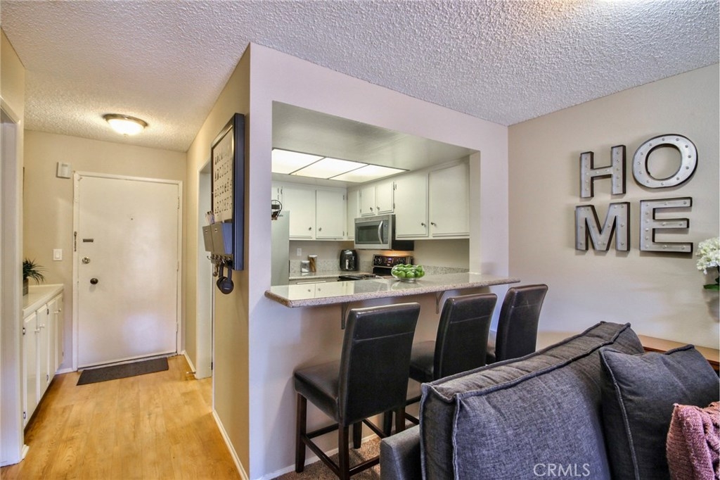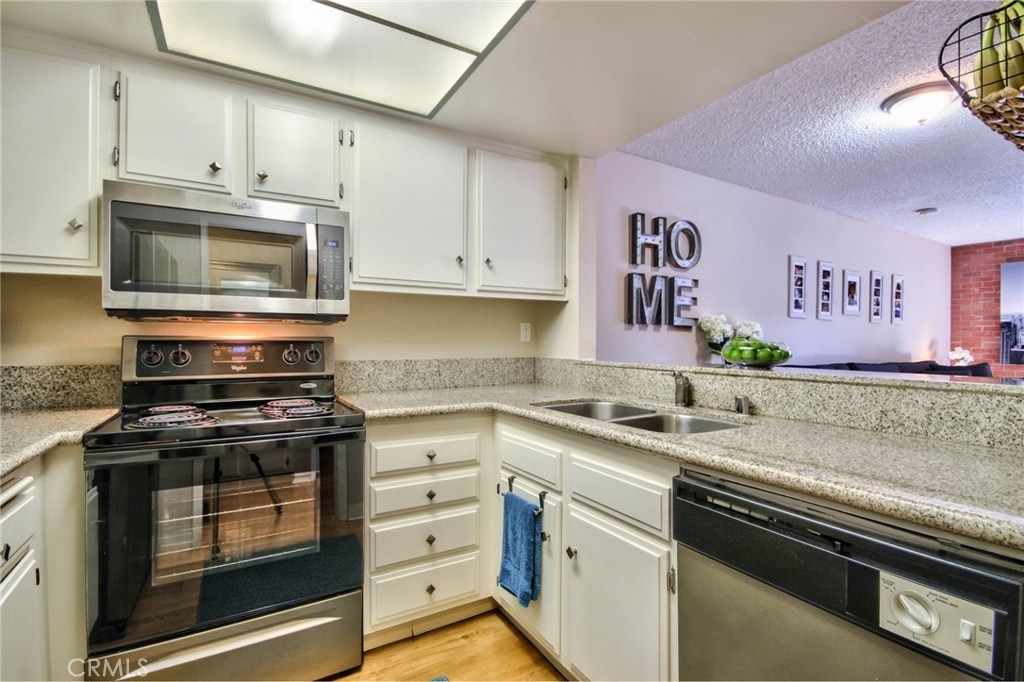 Absolutely adorable and immaculate condo in a great location and complex. As you enter this well decorated condo you will find a spacious cove with storage, an upgraded kitchen with white cabinets, granite countertops, Stainless steel stove and dishwasher, kitchen opens to a breakfast bar overlooking dining-room and living area, laminate floors run through the entryway, kitchen and bathroom area, newer carpet throughout the rest of the condo, large living room includes a stylish faux brick wall accent and a slider out to a spacious balcony, bathroom includes a large vanity, separate area with toilet and full size shower/tub, a stylish framed mirror and faux brick wall accent, spacious master-bedroom has a walk in closet as well as a secondary mirrored closet, unit has a brand new AC unit, 1 designated under ground and gated parking spot, storage closet in parking area. Complex is centrally located to freeways, shopping, parks and is within 5 minutes of City Center. Complex also offers a lobby, clubhouse, pool, jacuzzi, gym, large laundry facility, lots of green grassy areas for your pet! This unit is going to go fast!