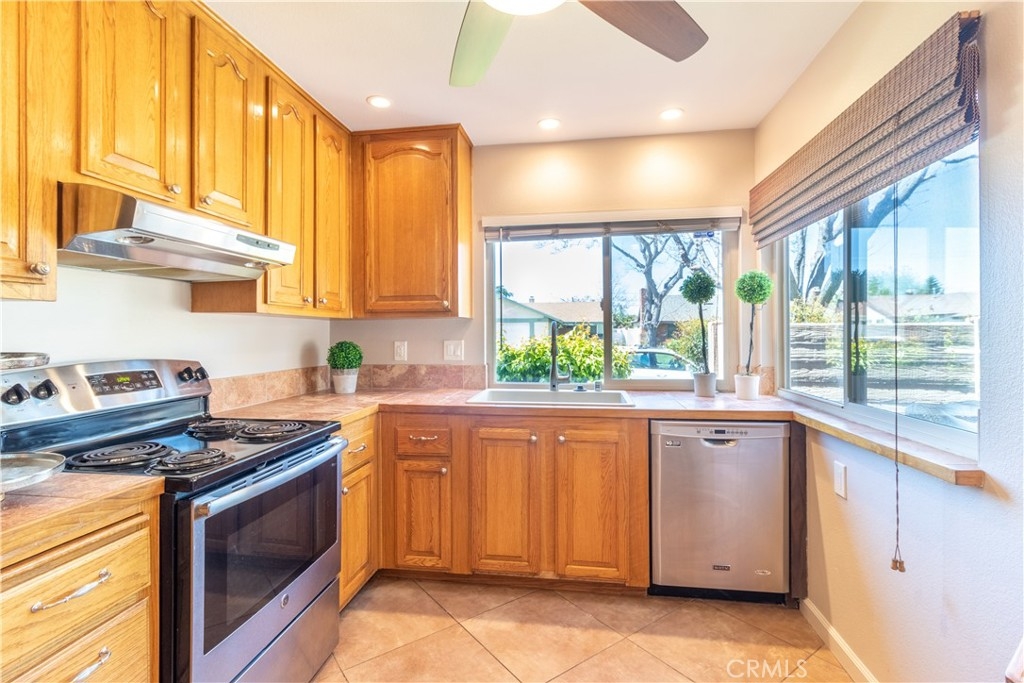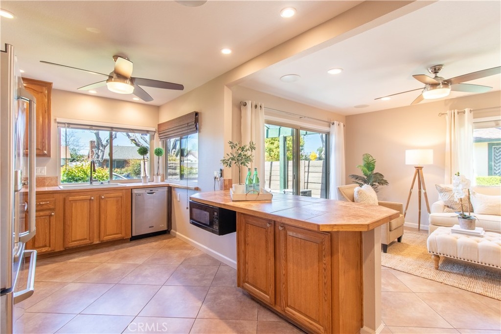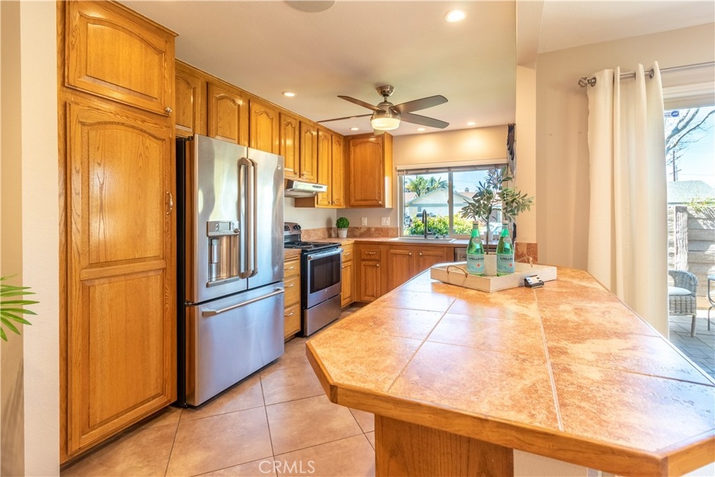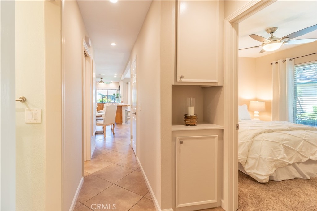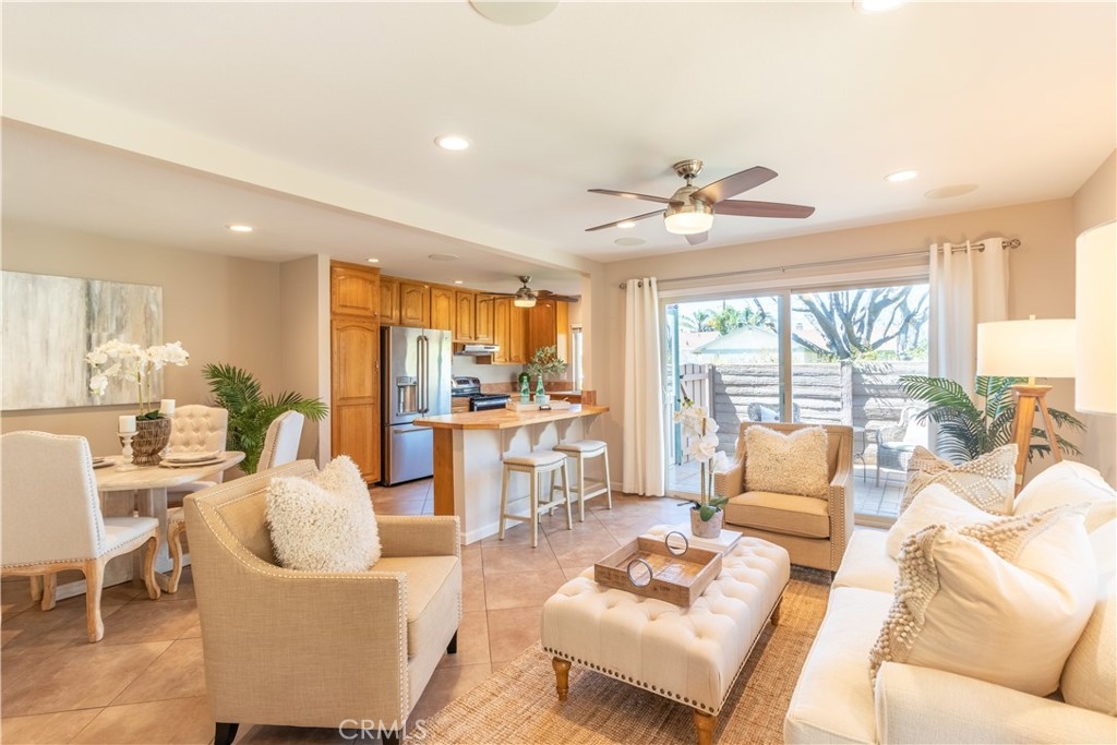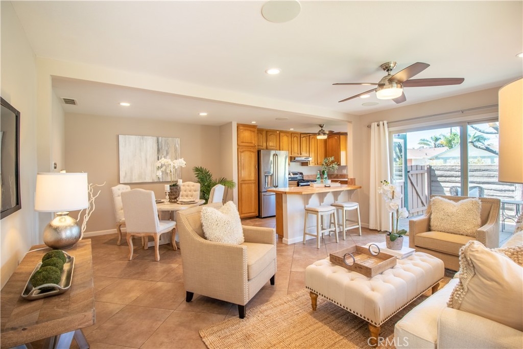 Beautiful 2 bedroom, 1 bathroom, single level, end unit condo in the community of Windwood in Anaheim! This ground-level corner unit is ideally situated with no one above. The open floor plan features a spacious living room, Tuscan-style tile flooring, sliding doors to the private outdoor patio, and an open kitchen. The kitchen offers elegant stone tile countertops, a breakfast bar, dining area, and pull-out shelving. The primary bedroom features a large walk-in closet, full length mirror, and carpet flooring. The bathroom has been beautifully updated with custom cabinetry, a marble countertop, floor to ceiling stylish tile shelving, a marble “seat” in the custom shower, dual shower heads, and custom lighting. Additional property highlights include the full-size laundry room with newer cabinetry, newer remote-controlled ceiling fans throughout, Nest system, recessed lighting throughout, a 1 car garage, and one additional assigned parking space. Windwood Community amenities include the swimming pool, spa, serene greenbelts, and walking paths. Convenient to area schools, golf, restaurants, shopping plazas, easy access to major freeways, and centrally located to Orange, Riverside, and Los Angeles counties!