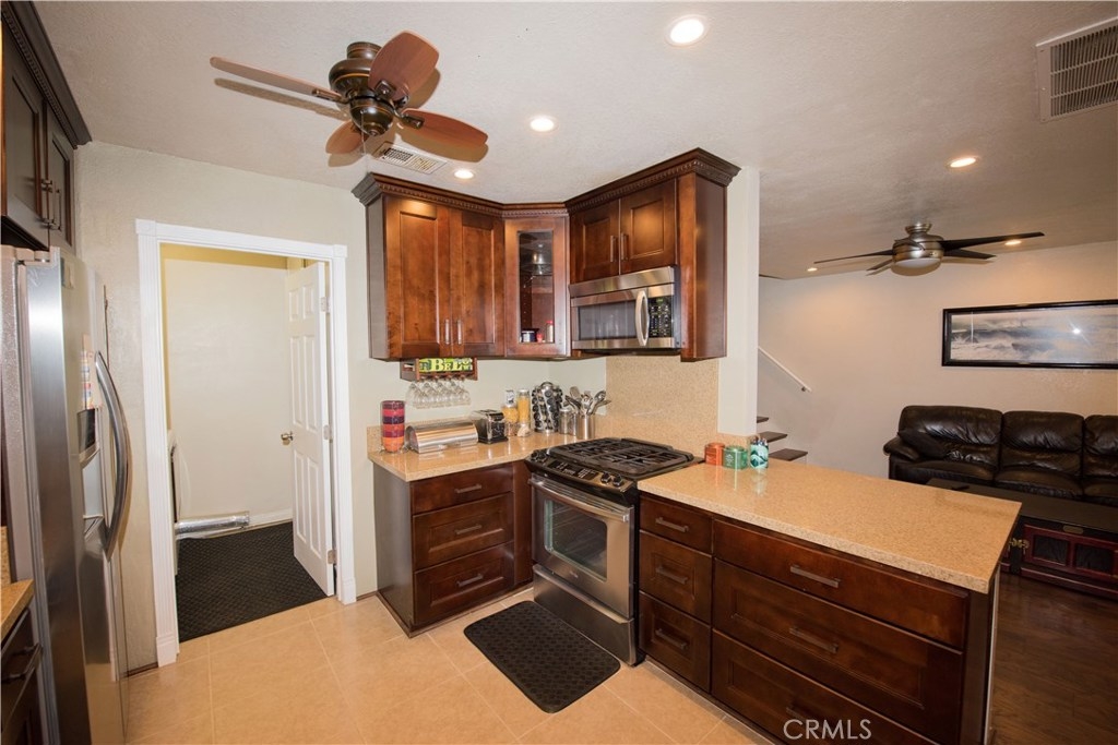 2-story 3BR, 1.5BA condo with,Kitchen is upgraded featuring quartz countertops, polished cabinetry and a separate room for washer & dryer with matching cabinetry. central heating/air conditioning, covered patio area to rest and relax. Nice ceramic tile in kitchen and bathrooms, wood laminate flooring throughout, and private 2 car garage 1 with opener. Also there is plenty of street parking to entertain guests. New washer/dryer inside unit (gas). Nice kitchen eating area with ceiling fan, Side by side refrigerator, gas cooking, dishwasher, and built-in microwave. Water softener inside garage. One half bath downstairs, one full bath and three bedrooms up stairs. Master bedroom is king sized with ceiling fan and mirrored closet doors. Secondary bedrooms also have ceilings fans and mirrored doors. H.O.A. recently finished re-plumbing the home with upgraded pex piping. Recessed lighting throughout the home. Assoc. pool, Located close to the 91 freeway and Imperial highway. Short commute to tons of shopping plazas, restaurants. Part of award-winning Placentia-Yorba Linda Unified School District. Great for first time home buyers!