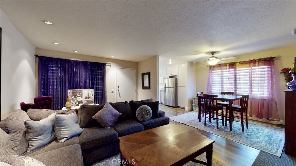 Gorgeous 2-bedroom, 1-bathroom, end unit condo in the community of Windwood in Anaheim! This upper-level corner unit is ideally situated and located very close to the pool area. The open floor plan features a spacious living room, newer laminate flooring and recessed lighting. Enjoy the view out of the windows in the upgraded kitchen. The primary bedroom features a large walk-in closet and ceiling fan. Conveniently located laundry room with overhead cabinets for added storage. Includes an attached 1 car garage, and one additional assigned parking space. Also includes a Brand New High Seer HVAC System! Windwood Community amenities include the swimming pool, spa, greenbelts, and walking paths. Close to schools, golf, dining, and shopping! With easy freeway access for commuters. Book an appointment to see this one today!