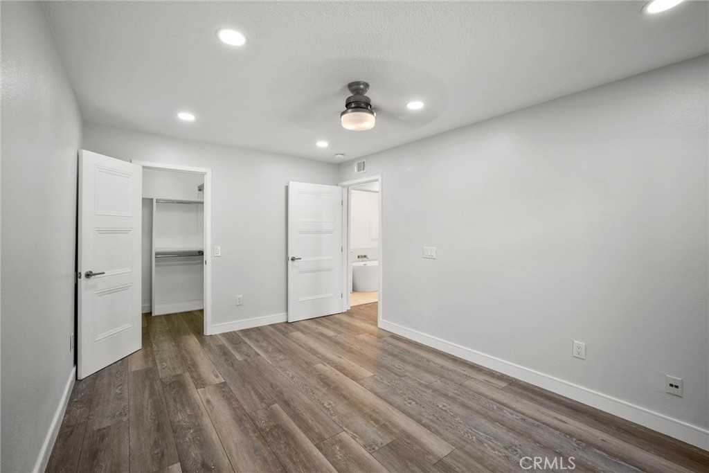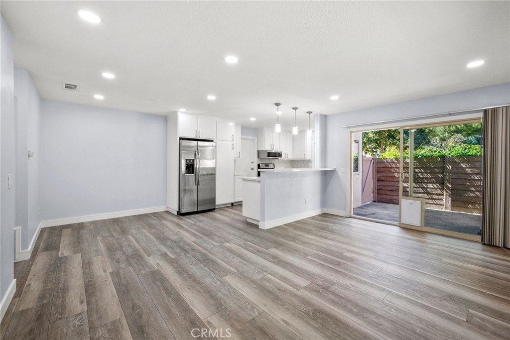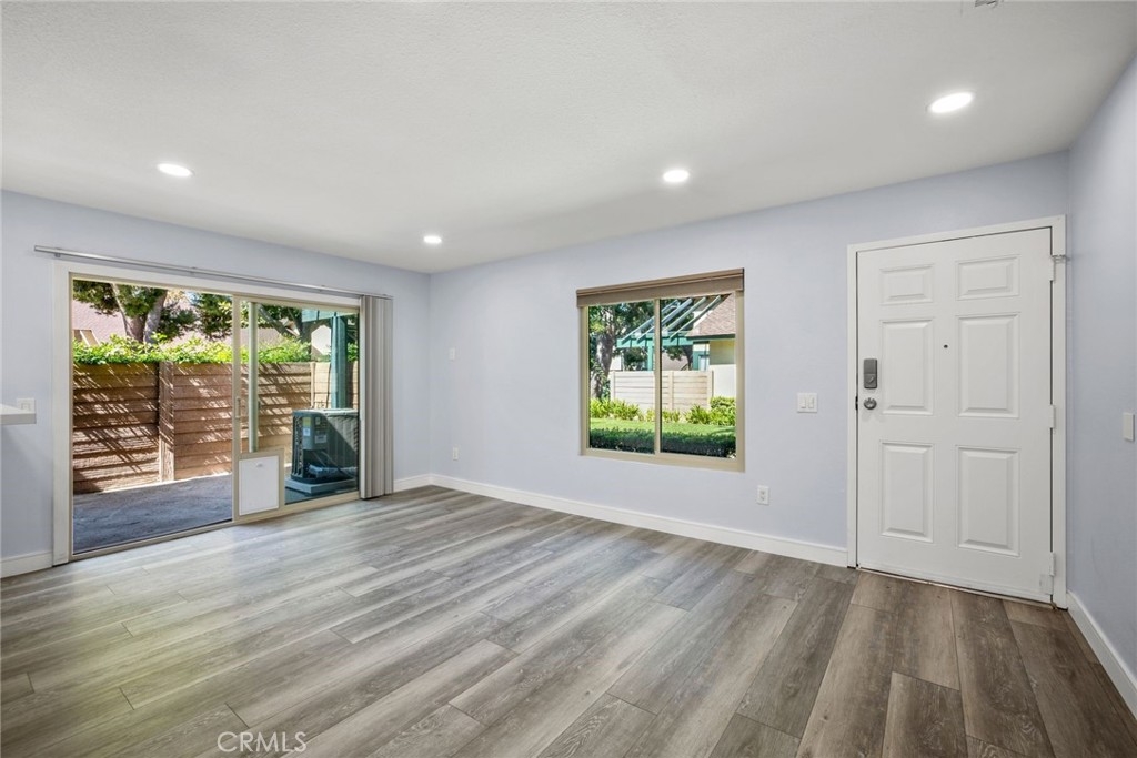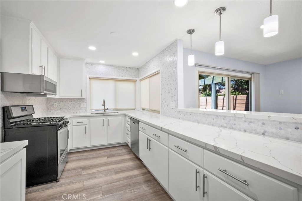 Beautiful 2 bedroom, 1 bathroom, single story condo in the community of Windwood in Anaheim! Enjoy a light, bright floor plan with recessed lighting and laminate wood flooring. The kitchen opens to the family room and features a breakfast bar, a breakfast nook, white cabinetry, and stainless steel appliances. The spacious bedrooms offer large closets with a walk-in closet the primary bedroom and a gorgeous updated primary bathroom with a soaking tub and a walk-in shower. Sliding doors lead to the enclosed outdoor patio. Additional property features include a 1 car detached garage and an inside laundry room. Community amenities include a swimming pool, spa, and walking paths. Convenient to nearby restaurants, shopping, and major freeways!