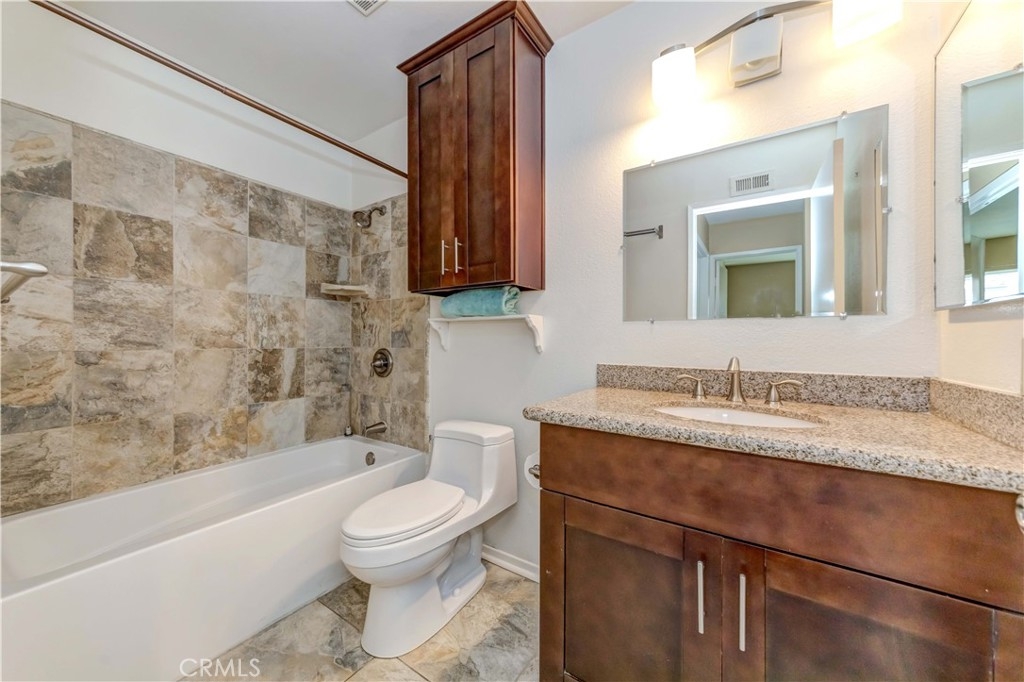 Nicely updated condo in a well-kept Anaheim complex in the Windwood community ***No one Below*** Gorgeous 2-bedroom, 1-bathroom, END unit condo *** This upper-level corner unit is ideally situated and located very close to the pool area*** The primary bedroom features a large walk-in closet and ceiling fan. Conveniently located laundry room with overhead cabinets for added storage. Includes an attached 1 car garage W/1 carport*** Windwood amenities include: large swimming pool, spa, and kiddy pool dedicated to the little ones for safe controlled water play of all ages. Community also includes greenbelts, walking trails and a 24 hr dedicated security! Neighborhood is close to schools, golf, dining and shopping! Easy freeway access for commuters! Check out the Virtual Tour!!!