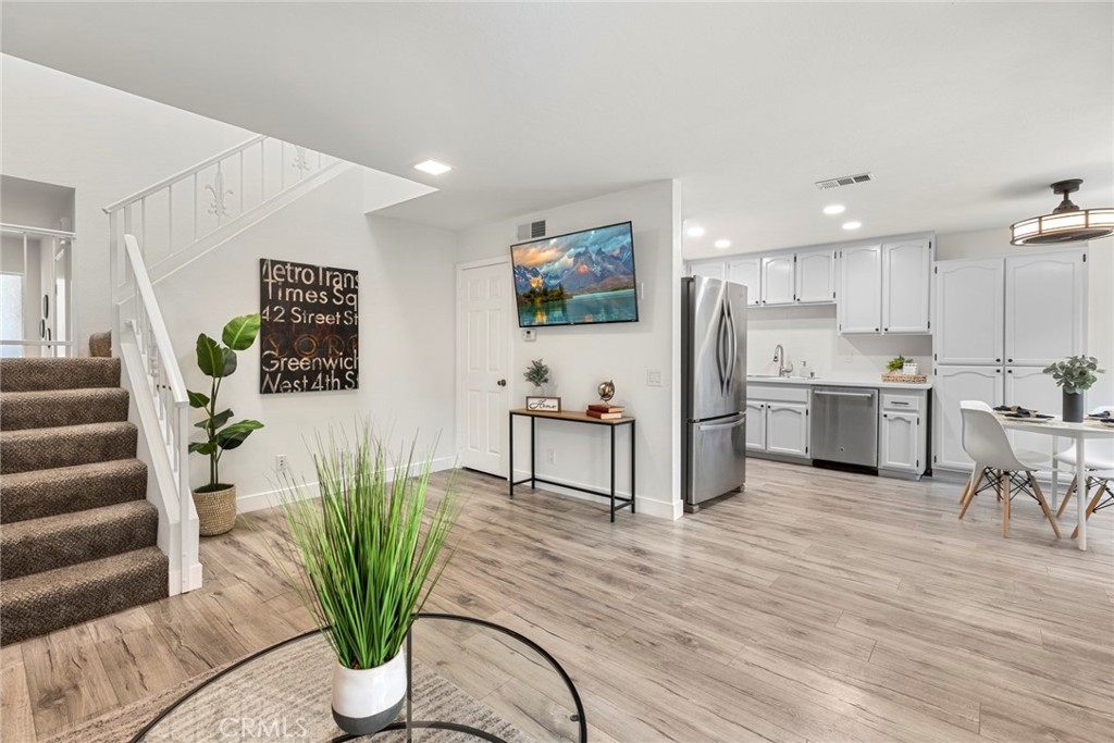 Welcome HOME to this remodeled spacious and inviting two-story townhome with 3 bedrooms, 2.5 baths and approx 1333 square feet of living space. This beautiful and completely remodeled townhouse is ready to move in and call home. Highlights include laminated wood flooring throughout, granite counter tops in the kitchen, stainless steel appliance, recessed lighting, new light fixtures, updated bathrooms, newer windows and sliding doors. As you walk in you'll delight in the open and spacious living room with a fireplace, a convenient powder room and access to the private backyard/patio. Upstairs is a large owner's bedroom with ensuite bathroom and a private balcony overlooking the backyard. A glass window in the owners suite overlooks the staircase and provides ample light. All three bedrooms are located upstairs plus two full baths. The second upstairs bedroom is spacious and has a large private balcony and the third bedroom features a beautiful bay window. The staircase with a ample lighting from the skylight makes the home feel light and bright. Rear private patio accessible from the living room, provides ample room and opportunity for quaint BBQ on those summers nights. The laundry area will be found in the two-car attached garage. Close to shopping centers, the elementary and middle schools, and to both the 91 and 57 freeways. Offerw are being presented to the sellers on Wednesday 2.17.2021