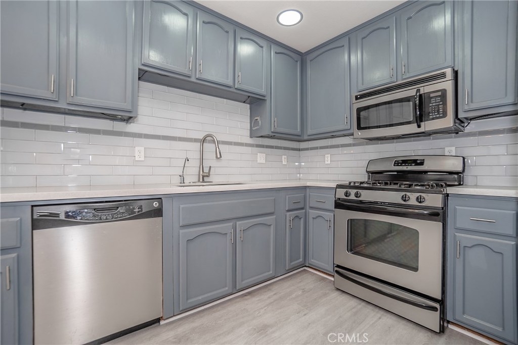 Turnkey 2 Story 3 Bedroom 2 1/2 Bathroom with 2 Car Garage and Private Patio boast 1282 of Open Concept Floor plan with new flooring through out. A Traditional Brick design surrounds a Modern Gas Fireplace in Spacious Living room , Remodeled Kitchen features Recessed lighting ,a Gorgeous Back Splash,Stainless steel appliances,dishwasher,microwave,stove,refrigerator included and plenty of counter and storage space. Its Beautiful High ceilings allow the Sky light above staircase to give off light/bright Natural light. Amenities include Master Suite with Balcony and His and Hers Closets,Central air and heat, crown moldings ,quarts counter tops,a Large Second Balcony off of the 2nd Room and a Bay window to decorate the 3rd room . The Back Patio is perfect for Entertaining with its Fire pit, Deck ,landscaping and quaint Bar area. HOA covers water,insurance,security in this small complex of only 18 units in Prime Orange County location.Close proximity to Cal State Fullerton and Dining and Nightlife at Downtown Fullerton