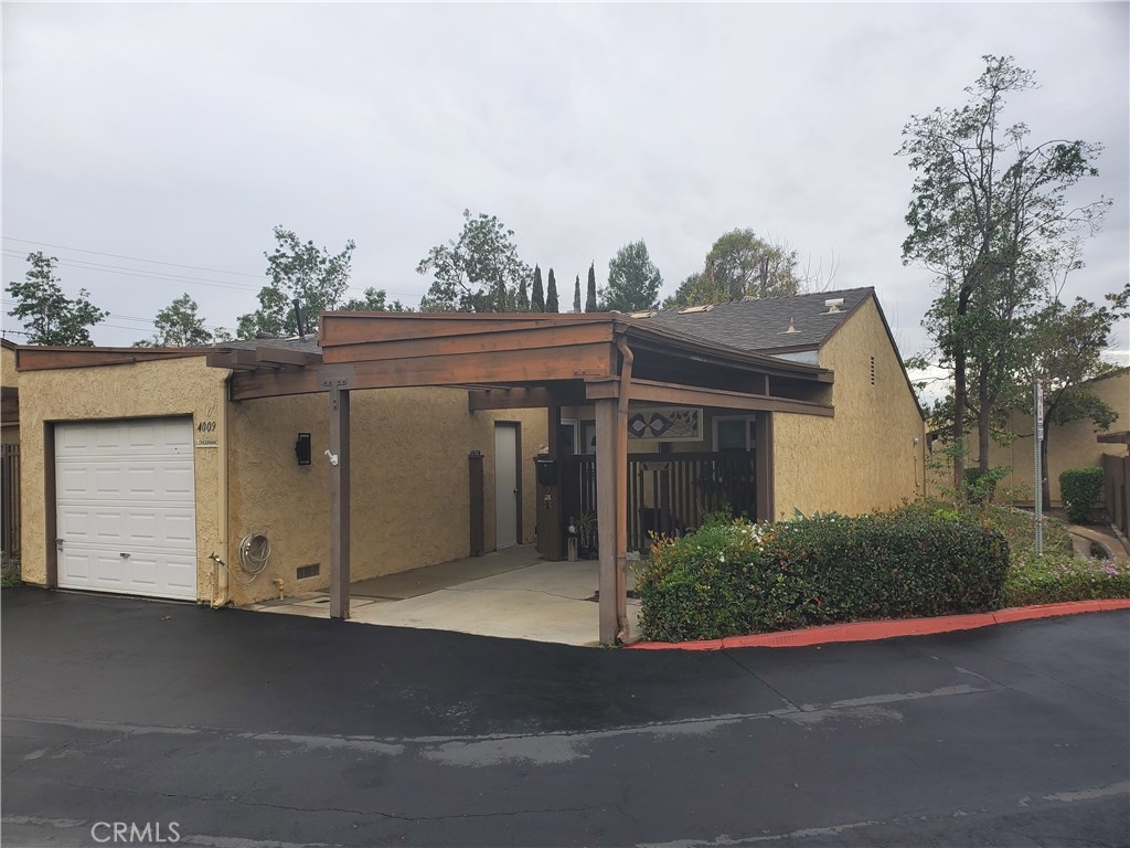 What A Find! Single story, cul-de-sac home, located near the Anaheim Hills and City of Orange border, offers two bedrooms, two patios and easy access private parking. Welcoming front entry with a fenced covered patio, attached garage and carport. Plus, enjoy the private backyard patio with a convenient garden gate leading to a serene park-like setting. Spacious living room with backyard patio access hosts a cordial dining area and opens to the kitchen showcasing beautiful Shaker style wood cabinets, granite counters, breakfast bar, four burner gas range, microwave, and hall pantry/closet. Wood flooring, dual pane windows, ceiling fans, wardrobe mirrors and window coverings. Newer air conditioner/heater. Attached garage with laundry area, storage shelves, front patio access. Community benefits include the pool and clubhouse. Close proximity to award winning schools, shopping, dining, and transportation making this residence the perfect place to call home.