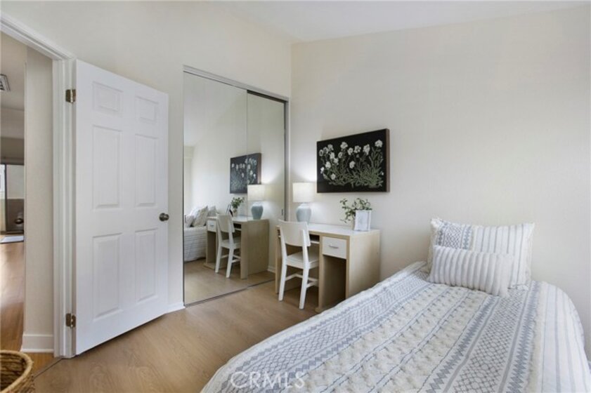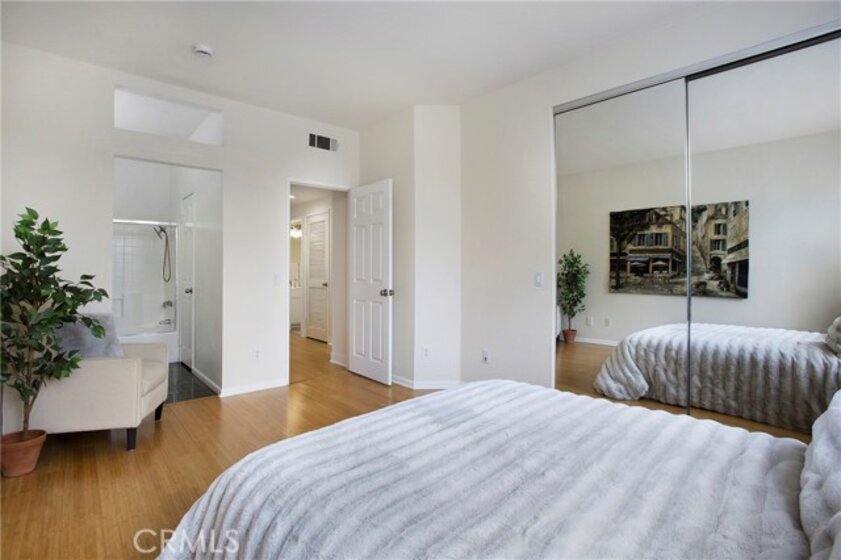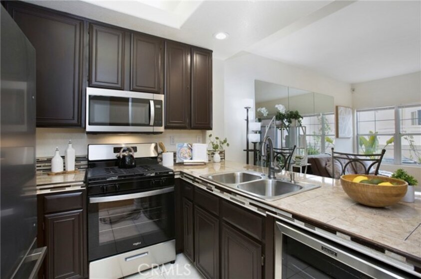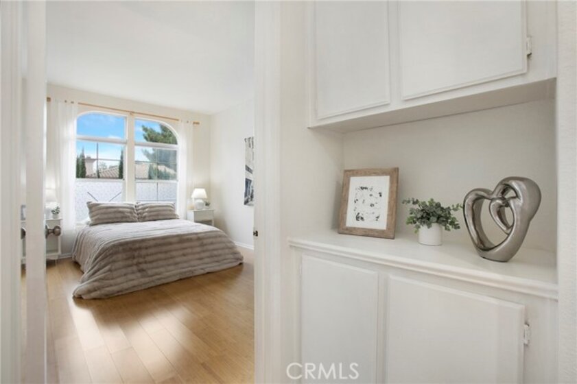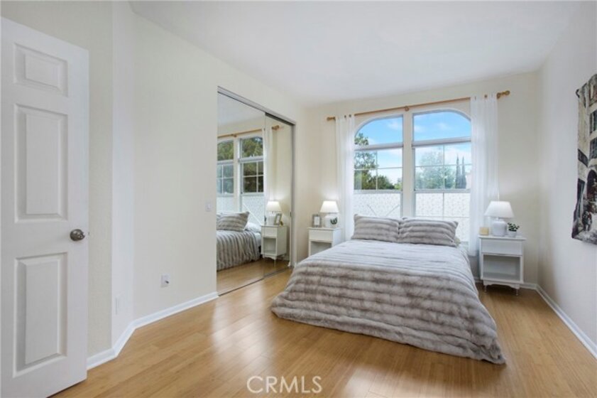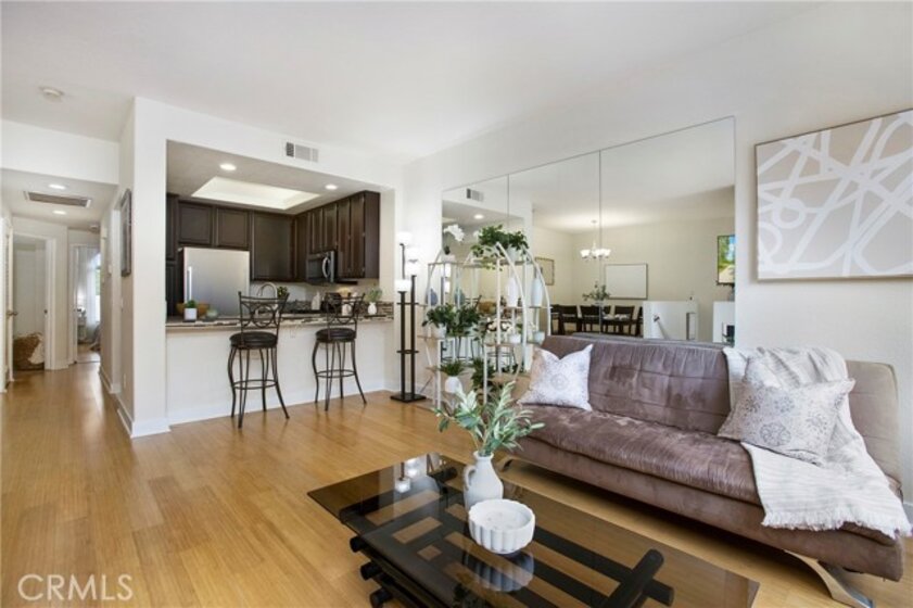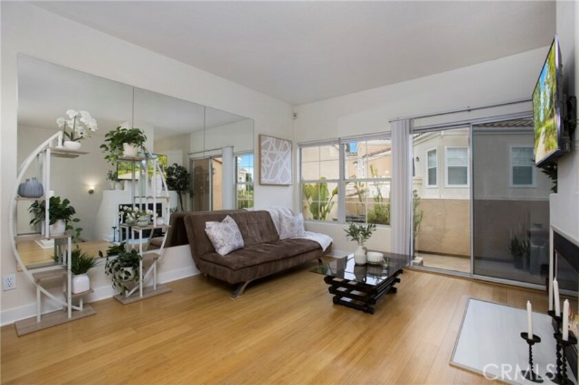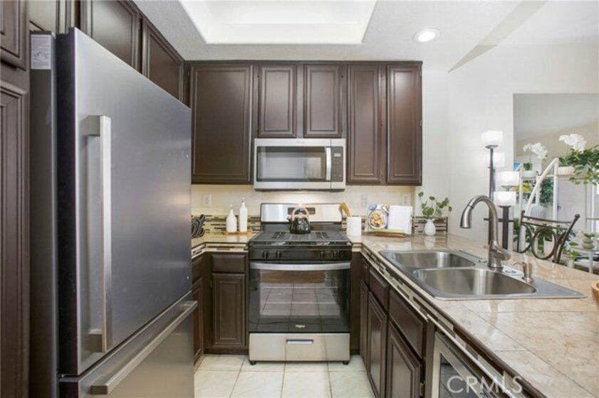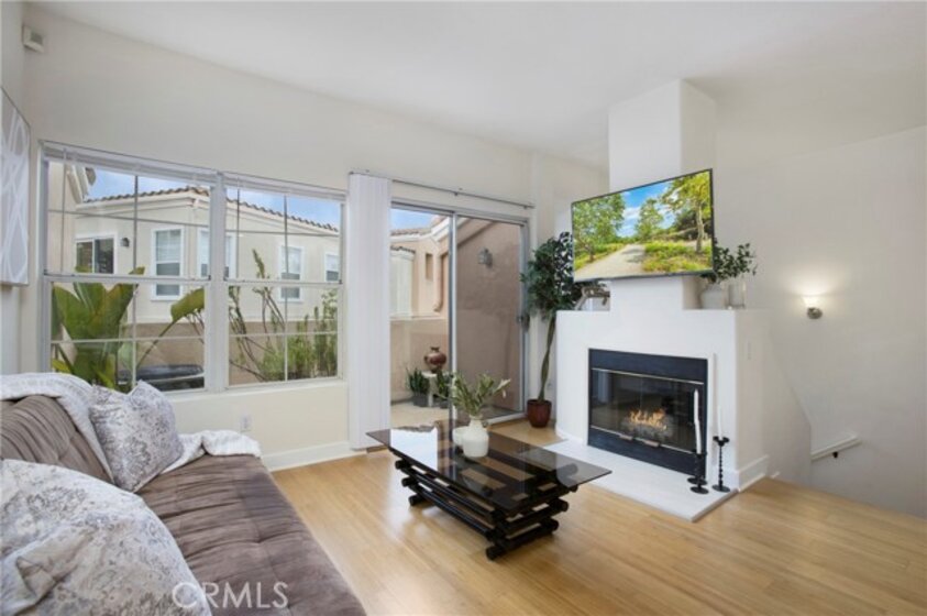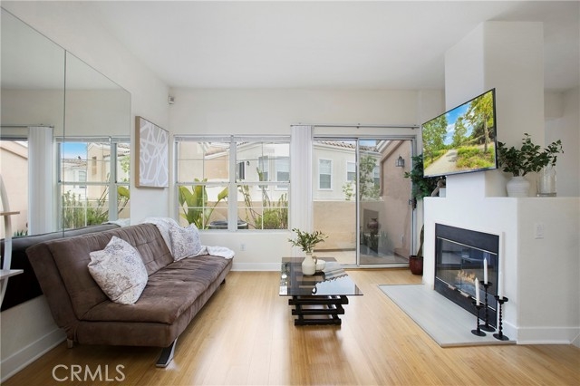 INVITING 2-BEDROOM CONDO IN THE DESIRABLE GATED COMMUNITY OF SUMMIT RENAISSANCE! This beautifully updated 2-bedroom, 2-bathroom condo offers 1,014 sqft of modern comfort and a unique layout that blends style with functionality. Fresh paint, newer bamboo flooring, and large windows fill the home with natural light, while all-new appliances add a touch of luxury. The main living space features an open-concept kitchen that flows seamlessly into the living and dining rooms, creating a warm, inviting space perfect for both everyday living and entertaining. Your kitchen shines with elegant wood cabinetry, stylish finishes, ample counter space, a breakfast bar for casual dining, and even a built-in wine cooler—ideal for hosting. The living room features a cozy fireplace and just beyond, glass sliding doors open to your own private balcony—perfect for enjoying fresh air, morning coffee, or evening relaxation. Down the hall is a spacious primary suite offering a serene escape and a second bedroom/office, while both bathrooms feature contemporary, spa-like upgrades. This gated community offers resort-style amenities including a sparkling pool, spa, gym, workout area, and picnic spots. Direct access to your tandem two-car garage provides ample parking and storage. Ideally located near Weir Canyon Nature Preserve, popular supermarkets such as Costco and Target, grocery stores, restaurants, shopping centers, and with easy access to major freeways for convenient commuting. Don’t miss your chance to own this stunning multi-level home in a vibrant, sought-after neighborhood. Schedule your private tour today!