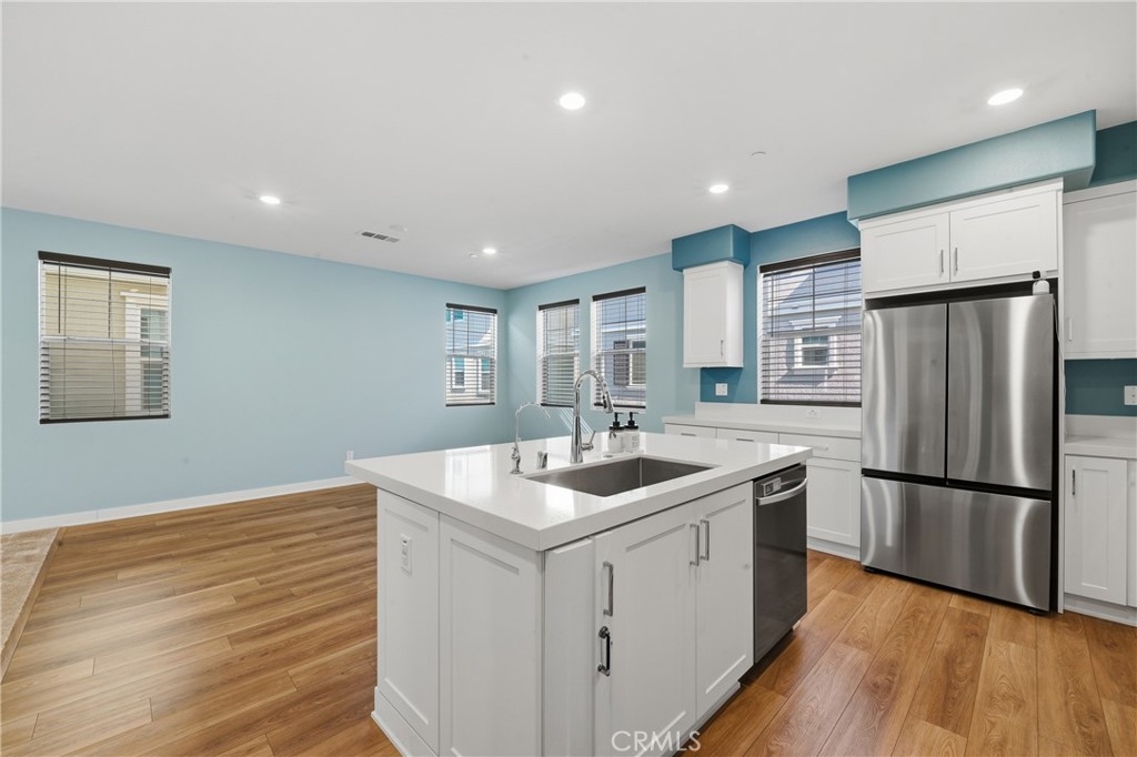 Welcome to the only available residence in Lennar’s SOLD OUT master-planned community of La Palma. One of the most sought-after duplex floor plans, this impressive 1,936 sq ft tri-level home offers both versatility and modern design. The entry level welcomes you with a spacious flex room, accessible from both the two-car garage and the private front courtyard. Ideal as a home office, gym, media room, or guest quarters, this flexible space adapts to your lifestyle. The second level showcases an open-concept layout designed for effortless living and entertaining. The chef’s kitchen features designer-selected cabinetry, high-end stainless steel smart appliances, a generous center island, and a walk-in pantry. The bright and airy family room flows seamlessly to a private balcony, creating an ideal indoor-outdoor living experience. Upstairs, the top level offers a tranquil primary suite along with two additional bedrooms connected by a convenient Jack-and-Jill bathroom, providing both comfort and functionality. Thoughtful upgrades include a tankless water heater, whole-home water softener and filtration system, and solar panels—helping maintain exceptionally low power bills even during warm summer months while enjoying central air conditioning throughout the day. The beautifully maintained La Palma community offers abundant guest parking and a resort-style pool for residents to enjoy. Ideally located just minutes from world-class attractions including Disneyland, Anaheim Packing House, Angel Stadium, and the Honda Center. A short drive brings you to South Coast Plaza, Newport Beach, Cal State Fullerton, and several of the region’s top medical centers. This is a rare opportunity to own in a community that has completely sold out — and where availability is virtually nonexistent.