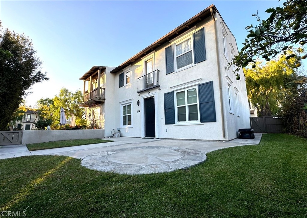 This beautifully upgraded two-story end unit townhouse is located in a secluded gated community in prime Anaheim area, offering 3 bedrooms, 2.5 bathrooms, and an attached two-car garage. With one of the largest yards in the community, it’s ideal for relaxing or entertaining. Main Features: First Floor: Spacious living room, dining room, kitchen, and a convenient powder room, 9” ceiling. The kitchen is customized with cabinetry, unique counters, backsplash, and a built-in refrigerator. Second Floor: All bedrooms are privately located upstairs. The large master suite features a Romeo and Juliet balcony, a generous bathroom with a double vanity, heated floors, and a walk-in closet. The other two bedrooms are spacious with ample natural light. Upgrades & Highlights: Heated floors in the master bathroom, LED and recessed lighting throughout, art display spotlights and wall night lights, Smart-timed light switches, HVAC with smart thermostat, and energy-efficient windows. Customized kitchen with soft water filter and unique finishes. Venetian plaster in the family room and a special accent wall in the dining area. Wood floors, Berber carpet on stairs, marble in upstairs bathrooms, Bidet-equipped toilets and customized bathroom finishes. Garage & Yard: Fully finished garage with epoxy floors, cabinetry, and storage. Expansive yard with fruit trees, grape vines, and night lights for a cozy evening ambiance. Conveniently located with easy access to Anaheim’s restaurants, shops, parks, schools, and freeway, this home offers a tranquil retreat and a prime location. Thank you for viewing!