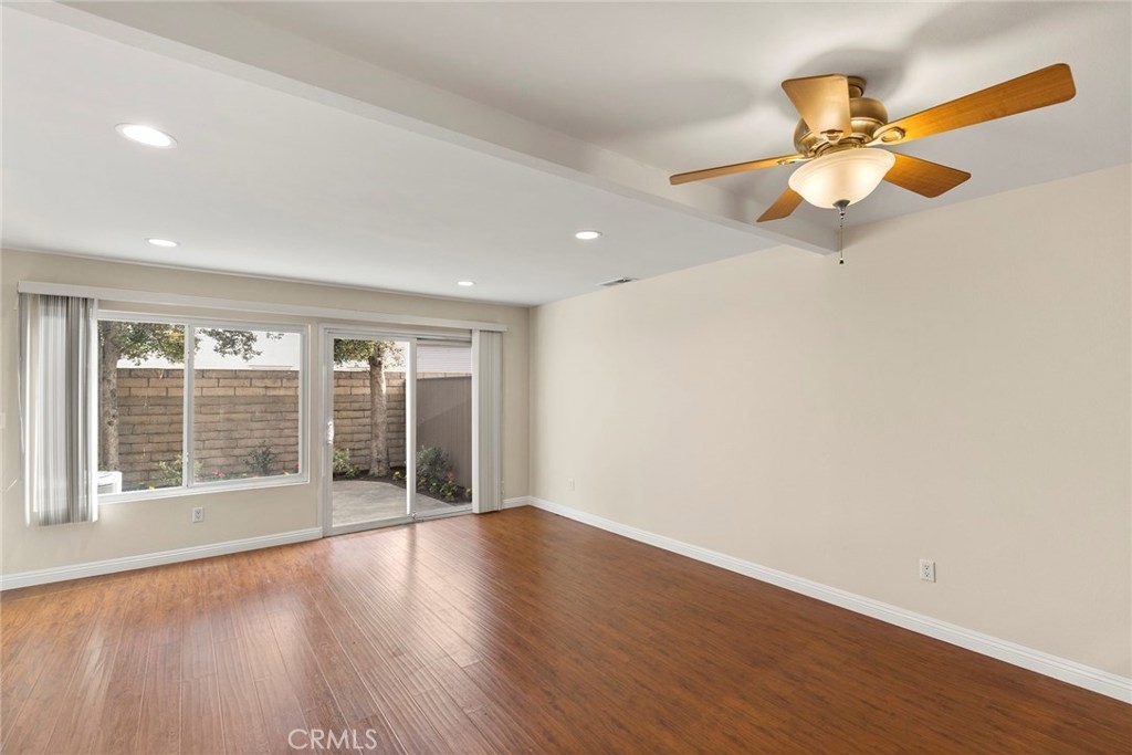 Clean Ridgeway Park Townhome. This home features two large bedrooms, both with huge closets! 1 bathroom upstairs and a 1/2 bath downstairs. The interior has been freshly painted and brand new carpet recess lighting just installed. You will love the step-saver kitchen with granite counter tops, tile flooring, and stove. Newer laminate throughout the entry & living room. Dual pane slider leads to the private patio. This unit comes with 1 assigned parking space and a 1 car garage. The exterior of the complex was recently painted and new landscaping throughout the complex. Close to restaurants, ARTIC, promenade area, Packing House, Angles Stadium, and centrally located near the 57, 22, & 5 freeways. Low association dues.