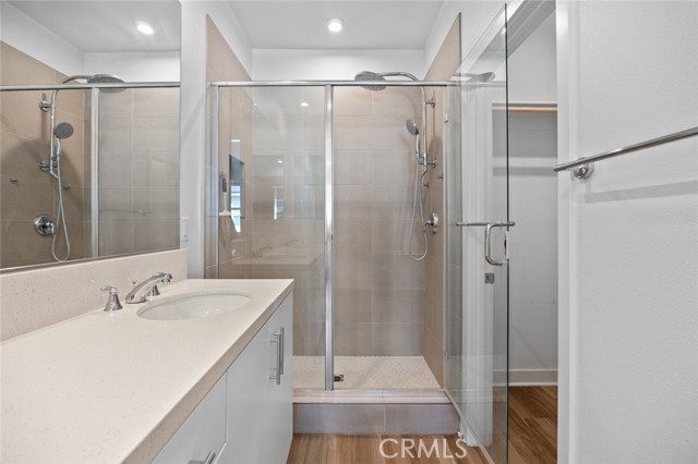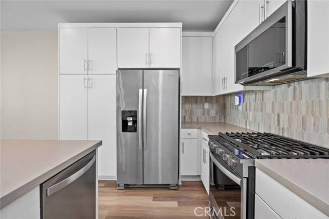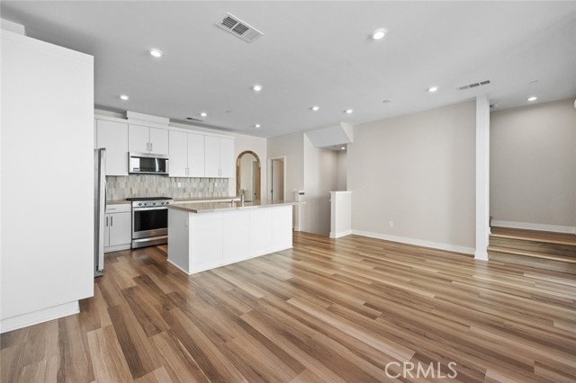 Step into modern California living with this sleek three-story townhouse, perfectly situated in Anaheim’s dynamic new-home community. Built in 2022, this residence offers 2 bedrooms, 2.5 baths, and approximately 1,242 sq. ft. of thoughtfully designed living space. From the moment you arrive, you’ll appreciate the two-car attached garage and gated community access for added comfort and security. The main living level features an open-concept design with upgraded wood-style flooring, abundant natural light, and seamless flow between the living room, dining area, and kitchen. The gourmet kitchen is a true highlight — showcasing quartz countertops, a full tile backsplash, a six-burner gas cooktop, and premium stainless-steel appliances. Step outside to your private second-floor balcony, ideal for morning coffee, evening relaxation, or entertaining with a view of the landscaped courtyard and community spaces. Upstairs, you’ll find two spacious bedrooms, each with its own ensuite bathroom for maximum comfort and privacy. The primary suite impresses with full-height tile surrounds, a walk-in shower, and designer finishes throughout. This newer community adds exceptional value with owned solar panels (no lease!), a resort-style pool and spa, BBQ/picnic areas, and direct access to the Santa Ana River Trail — perfect for biking, jogging, or simply enjoying the outdoors. Location is everything: just minutes from Disneyland Resort, the Honda Center, and Angel Stadium, with convenient access to the 5 Freeway for easy commuting. Whether you’re investing, downsizing, or seeking a low-maintenance lifestyle, this turnkey home is ready to welcome you.