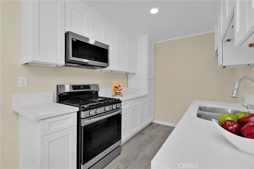 Welcome to the Brookhurst Village community! This unit is move-in ready. The kitchen is equipped with brand new cabinets, counter tops, fixtures and a Samsung self-cleaning range/air fryer and microwave, ready to prepare and cook your favorite recipes. The dining area is right next to the kitchen with a beautiful chandelier that adds a touch of elegance and invites you to enjoy your meals. The living room is spacious and cozy, perfect for relaxing with your family. The master bedroom is roomy with a walk-in closet, providing ample storage space. The second bedroom is also a good size and includes a built-in closet. The balcony is a great place to enjoy a BBQ or a nice meal outdoors. With exquisite laminated flooring throughout for easy maintenance and cleaning. The entire place has been freshly painted, creating a bright and airy atmosphere. With easy access to supermarkets, restaurants, schools, churches, the 5 and 91 Fwys, a few minutes away from Disneyland. Back on the market, subject to cancelation of previous escrow. Buyer was unable to perform. Ready for you to make it your own!