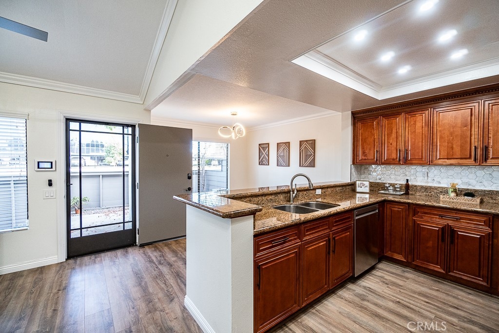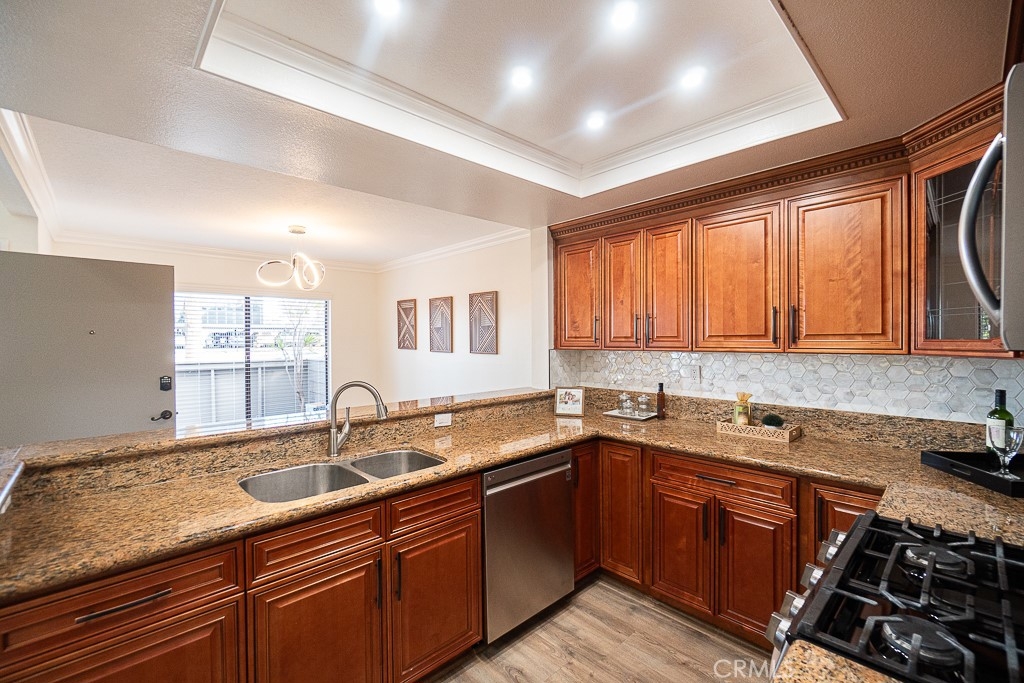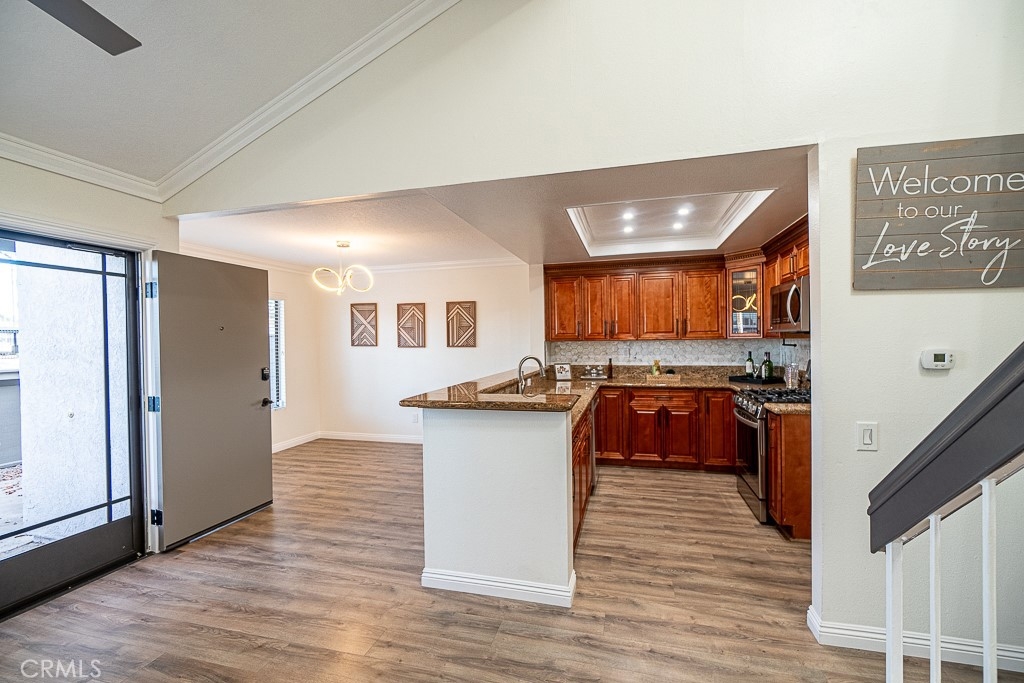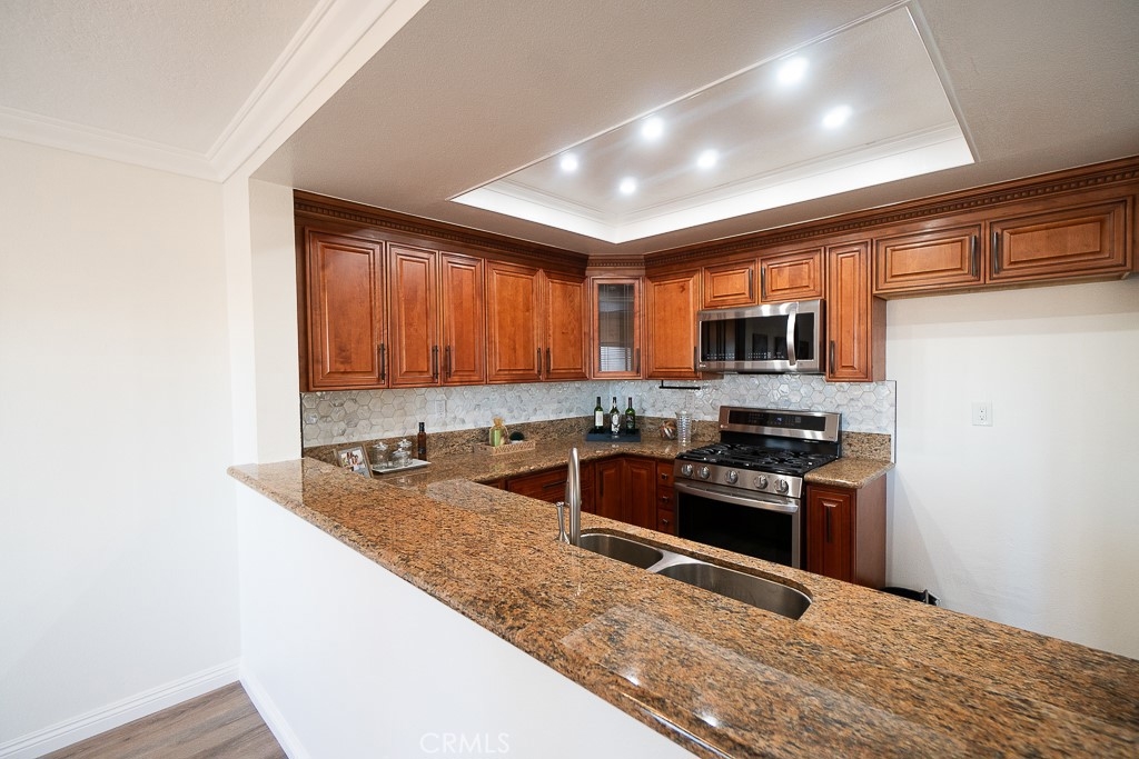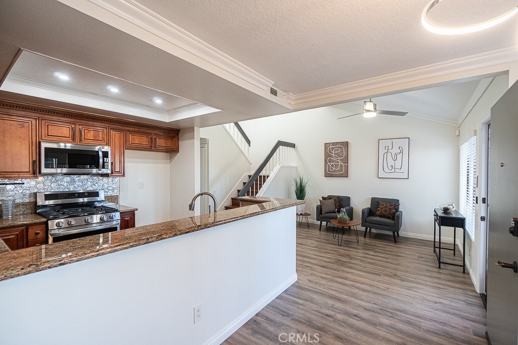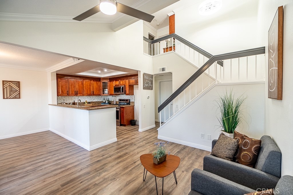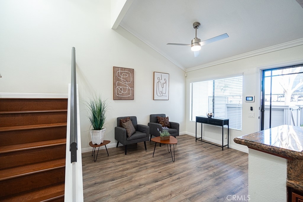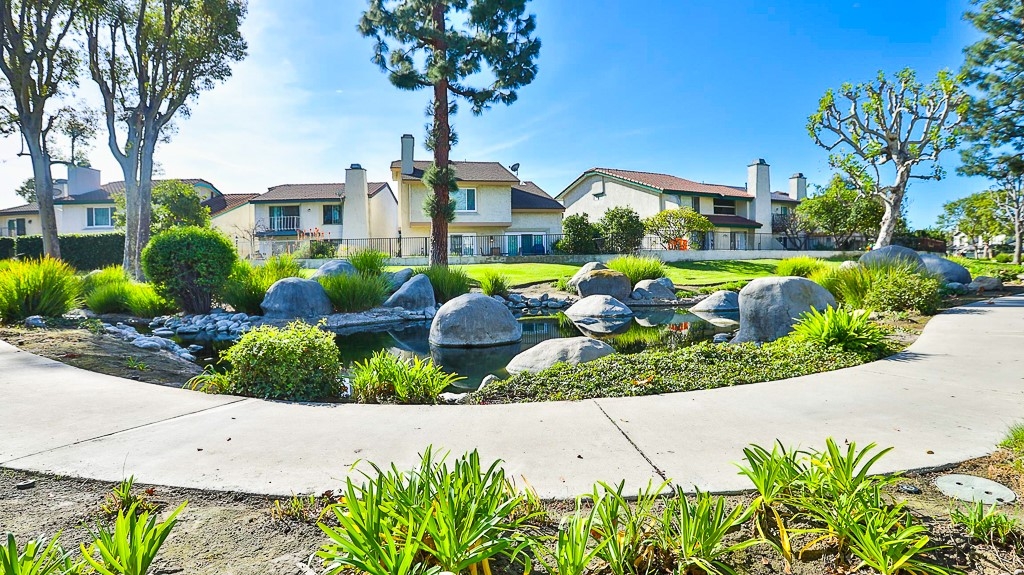 BEAUTIFUL CAPE COD STYLE TOWNHOME THAT EVOKES PURE JOY! LOCATED IN EXCELLENT NEIGHBORHOOD, BEAUTIFUL RESORT-LIKE HOA COMMUNITY WITH PRIVATE ACCESS TO SERENE LAKE AND POOL. This beautiful townhome has all that you need! DIRECT ACCESS TO 2 car garage, laundry connection in garage, 2 bedrooms, private courtyard in front. Lots of parking on street located at the front of the unit for guests along with additional guests parking within HOA community. BEST PART IS NO ONE ABOVE OR BELOW THIS UNIT! Conveniently located near lots of retail stores such as Walmart, Target, 99 Ranch Market, Home Depot; Close to restaurants and shopping at Anaheim Plaza, also minutes to freeway. Step inside and be impressed with high cathedral ceiling and with gorgeous gourmet kitchen that consists of solid wood cabinets, granite countertop, breakfast bar, state of the art stainless steel appliances (range oven, microwave, dishwasher), and recess lights. New custom interior paint throughout. Exquisite laminate floor, mirror closet doors, modern fixtures, lights, etc. Modern recess lights and ceiling fans throughout. Large master bedroom with private large powder room and oversized walk-in closets with custom shelves & storage. What are you waiting for? put in your offers now before it's Sold!. Please Note: This condo does not qualify for FHA, CHFA loan.