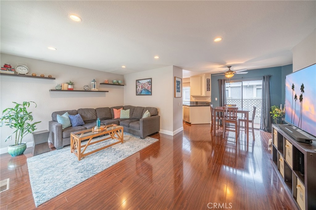Fantastic Townhouse In Waterscape! Bright and open main floor living space features a balcony and a deck for your enjoyment. Spacious dual master bedrooms, airy balcony off the front. Wide two car attached garage with direct access has a laundry area and under stair storage. Extra storage throughout, large closets. In the heart of Historic Anaheim, center of Southern Calif entertainment, 2 miles to Disneyland. Incredible walkability, close to Anaheim Packing District with shops, restaurants and Center Street Promenade. Close to the 5 and 91 Freeways, easy access. HOA maintained grounds are lush and green, landscaped walkways lead to a fenced pool and spa area. HOA also pays trash, water and sewer. Central air conditioning/heating throughout.