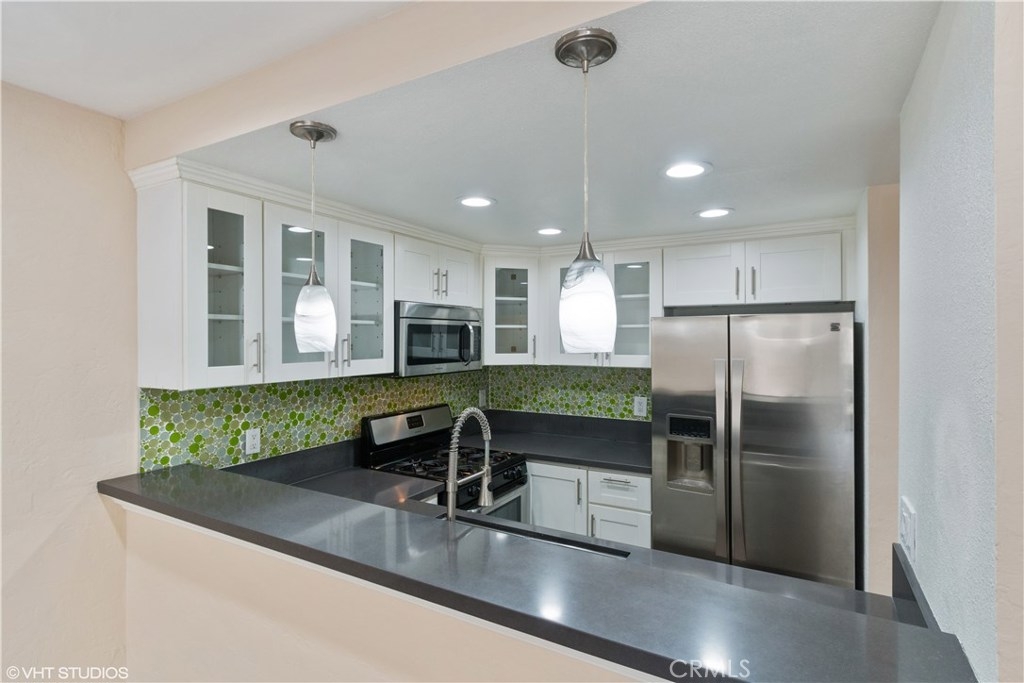 Executive living within walking distance to Disneyland and Downtown Disney. This recently remodeled, 2 story, 2 bed & 2 1/2 bath condo has everything to offer. The open floor plan includes a large living, dining area, master bedroom with remodeled bath and walk in closet, indoor laundry that includes washer and dryer, private patio, remodeled kitchen with quartz counters, stainless steel appliances including microwave/hood, dishwasher, oven/range and refrigerator, custom cabinets and designer back splash. Upgrades and amenities include new interior 2 tone paint, new laminate flooring with 4" baseboards, new carpeting, new recessed lighting, copper plumbing and central A/C & heat. The unit provides a 1-car detached garage with auto opener and a secondary parking space, access to the HOA amenities: Pool, spa, clubhouse, green belt and playground. Near shopping, transportation, Anaheim's Garden Walk, Angel's Stadium and Convention Center. Virtual Reality Tour Link: https://my.matterport.com/show/?m=jKKx21mUrNx&brand=0