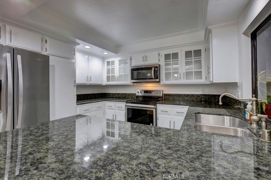Beautiful turn-key townhome in Pepperwood Village, walking distance from Disneyland! This unit offers all the conveniences of a traditional home, without the burden of extensive maintenance. The kitchen features sleek white cabinetry, granite countertops, and stylish stainless steel handles. With 3 bedrooms and 3 bathrooms, plus the option for a FOURTH bedroom or den, this home offers flexible living spaces to suit your needs. The master bedroom is spacious with a large closet and the master bathroom has been updated with beautiful tile and a granite countertop vanity. Freshly painted with new light fixtures throughout, this townhouse is move-in ready. It also includes a two-car garage with direct access into the unit, separated by a small private yard space, perfect for enjoying a bit of outdoor time. The unit features a private laundry area located in the garage. Pepperwood Village is a wonderful community with private security, a playground, adult pools and a children's pool. Located near shopping, restaurants, 5 freeway and walking distance from Disneyland. Don’t miss out on making this one yours!