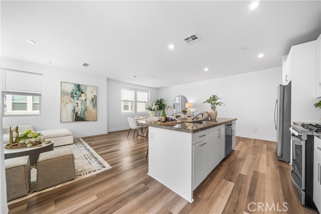 Welcome to Your Dream Home in a Gated Community! Discover this stunning new construction home featuring 3 spacious bedrooms and 2.5 modern bathrooms. Enjoy an open-concept living room that flows seamlessly onto a large private deck—perfect for entertaining or relaxing. The contemporary kitchen is equipped with stainless steel appliances, including a refrigerator, and offers plenty of cabinet and counter space. Upgrades include elegant wood flooring on the second level and cozy carpet on the third. Located in a beautifully maintained gated community with premium amenities such as a swimming pool, spa, BBQ areas, and a dog park. Ideally situated in the heart of Orange County, you're just minutes from Disneyland, Angel Stadium, the Honda Center, major shopping centers, and easy access to the 5 freeway. Don’t miss your chance to call this incredible home yours!