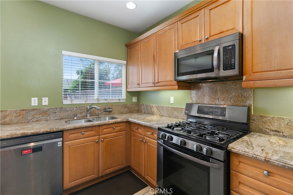 Excellent 4 bedroom condo with large backyard to envision your perfect set up for entertaining, barbecuing and relaxation! The spacious floor plan provides spacious living room with fireplace and dining area that leads into the kitchen. Light and bright kitchen includes granite counters, and stainless steel appliances with 5 burner range. The open master suite includes a walk-in closet, and master bath with dual vanities and glass enclosed shower. Enjoy entertaining from the large balcony off the office. Convenient separate laundry room.