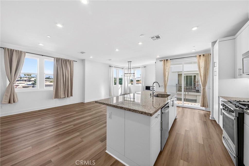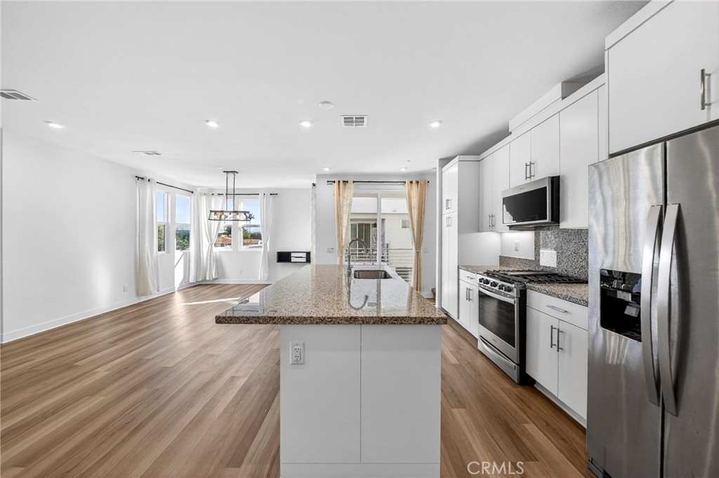 BEAUTIFUL HOME LOCATED IN THE 100 WEST GATED COMMUNITY BUILT BY TOLL BROTHERS, CONTEMPORARY LUXURY CONDO WITH LOTS OF UPGRADES. STUNNING 3 BEDROOMS AND 2,5 BATHS WITH BALCONY, LUXURY WOOD-LIKE LAMINATE AND CARPET FLOORING, REFRIGERATOR, WASHER/DRYER WITH 2 CAR ATTACHED GARAGE, INCLUDING SOLAR PANEL AND ELECTRIC CHARGING ON THE WALL. IF YOU ENTER THE 2ND FLOOR, YOU WILL BE GREETED BY AN OPEN-CONCEPT LIVING AND DINING AREA THAT'S PERFECT FOR ENTERTAINING WITH NATURAL LIGHT. THE KITCHEN FEATURES HIGH-END STAINLESS STEEL APPLIANCES, GRANITE COUNTERTOPS, AND AMPLE CABINETS, MAKING IT A CHEF'S DREAM. THE COMMUNITY FEATURES POOL/SPA, DOG PARK, BBQ STATION, AND KIDS PLAYGROUND. THIS 100 WEST LUXURY CONDO IS JUST MINUTES AWAY FROM DISNEYLAND, ANGEL STADIUM, HONDA CENTER, UCI MEDICAL CENTER, ANAHEIM PACKING DISTRICT, AND MUCH MORE. CONVENIENT LOCATION WITH EASY ACCESS TO MAJOR FREEWAYS.