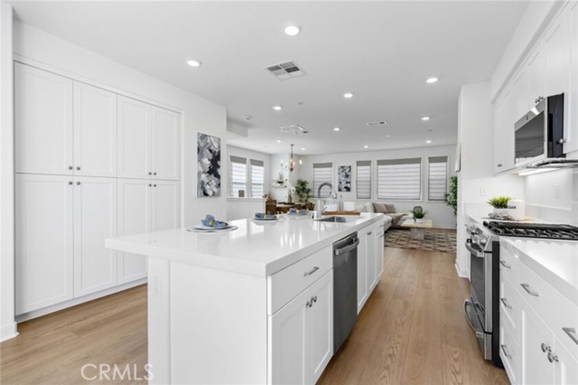 Rarely does a home of this caliber become available - especially at this price point. Perfectly positioned on a coveted corner lot just steps from the community pool within the gated community of Emerald Point by Lennar Homes, this sophisticated tri-level residence offers an unrivaled blend of luxury, functionality, and convenience. With three bedrooms, four bathrooms, and 2K sq.ft. of impeccably designed living space, every detail has been thoughtfully curated for modern living. The first-floor flex space offers endless possibilities, currently designed as a children’s play area with a custom built-in library and loft, yet easily adaptable to suit your needs. As you make your way up to the second floor, you’ll be captivated by the sun-drenched great room, highlighting the seamless open floor plan. The expansive layout flows effortlessly into a spacious kitchen complete with premium cabinetry hardware, luxury vinyl plank flooring, and an adjacent balcony - the perfect setting for sunset dinners or weekend entertaining. The primary suite is a sanctuary unto itself, featuring a spa-inspired ensuite with dual vanities and a capacious shower enclosure, all complemented by a generous walk-in closet. Every inch of this home reflects elevated design, from marble-tiled bathrooms to wireless Roman shades that can be effortlessly removed for cleaning. And for those who crave outdoor living, this home offers not just one, but two private outdoor spaces - a balcony overlooking the pool and a serene first-floor patio retreat. It also comes equipped with solar panels so you can feel good about renewing energy and save some money while you’re at it. Adding to its appeal, this home is still covered under the builder’s full warranty for eight more years, ensuring exceptional peace of mind. Its prime location offers unparalleled accessibility to major freeways, retail destinations, top dining, and some of Anaheim’s most iconic attractions. Homes like this - in a setting like this, at a price like this - simply don’t exist. If you thought Orange County homeownership was out of reach, think again. This could be your moment - or someone else’s - so connect with us today and schedule your private showing.