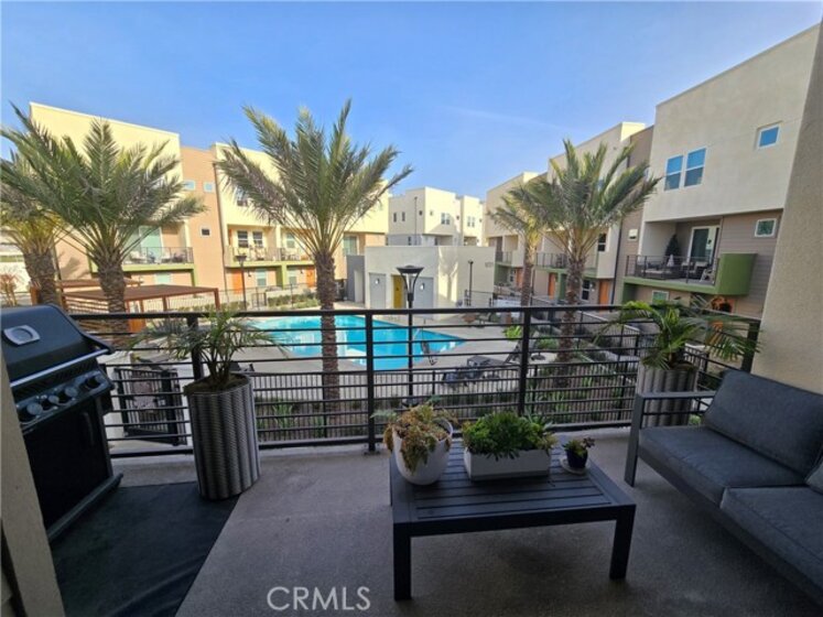 Imagine waking up to sparkling pool views, then stepping out to enjoy Anaheim's vibrant lifestyle – all from your luxurious, upgraded townhome. This isn't just a home; it's a lifestyle upgrade at Emerald Pointe, offering the perfect blend of modern sophistication and resort-style living. As a resident, you'll enjoy resort-style amenities within this secure, gated community, including a sparkling swimming pool with cabanas, BBQ areas, a fire pit, a dog park, and ample guest parking. This gorgeous, modern townhome, the largest floor plan in Emerald Pointe, is a bright end-unit with 3 bedrooms and 2 full and 2 half bathrooms, perfectly positioned on a premium lot. Step inside and be captivated by extensive upgrades, including paint, lighting, and flooring. The first floor offers a private, gated patio leading to a spacious office, a convenient half-bath, and ample storage. The attached, oversized 2-car garage features a Wi-Fi garage door opener, two EV charging plugs, a solar monitor for the fully paid solar panels, and a tankless water heater. The second floor boasts an open-concept layout, perfect for entertaining. Upgraded fixtures include DC ceiling fans, Wi-Fi thermostats with room sensors, and an expansive quartz kitchen island. A sliding glass door leads to your private outdoor balcony, offering direct views of the community pool. Ascend to the third level, where the master suite is a retreat with a large walk-in closet and en-suite bathroom featuring dual vanities, an oversized glass-enclosed shower, and a beautiful, space-saving sliding door. You'll also find two spacious bedrooms, a full bathroom, and a full-sized washer and dryer on this level. Your new home places you in the heart of Anaheim's most vibrant attractions. Enjoy easy access to major freeways (I-5, SR-91), world-class shopping, dining, and entertainment. You're just minutes away from Disneyland Resort, Anaheim GardenWalk, Honda Center, Angel Stadium, and ARTIC, making both relaxation and recreation effortlessly accessible. Don't miss this opportunity to own a stunning, upgraded tri-level townhome with incredible pool views and the financial benefit of paid solar!